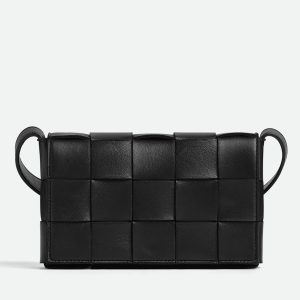 Bottega Veneta Small Cassette Bag In Black Intrecciato Lambskin