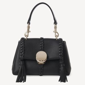 Chloe Penelope Mini Umhängetasche aus schwarzem genarbtem Kalbsleder
