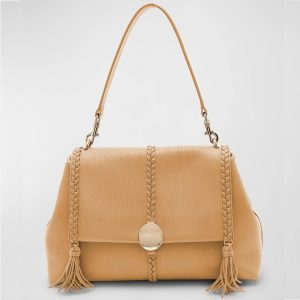 Chloe Penelope Medium Umhängetasche aus genarbtem Kalbsleder in Beige