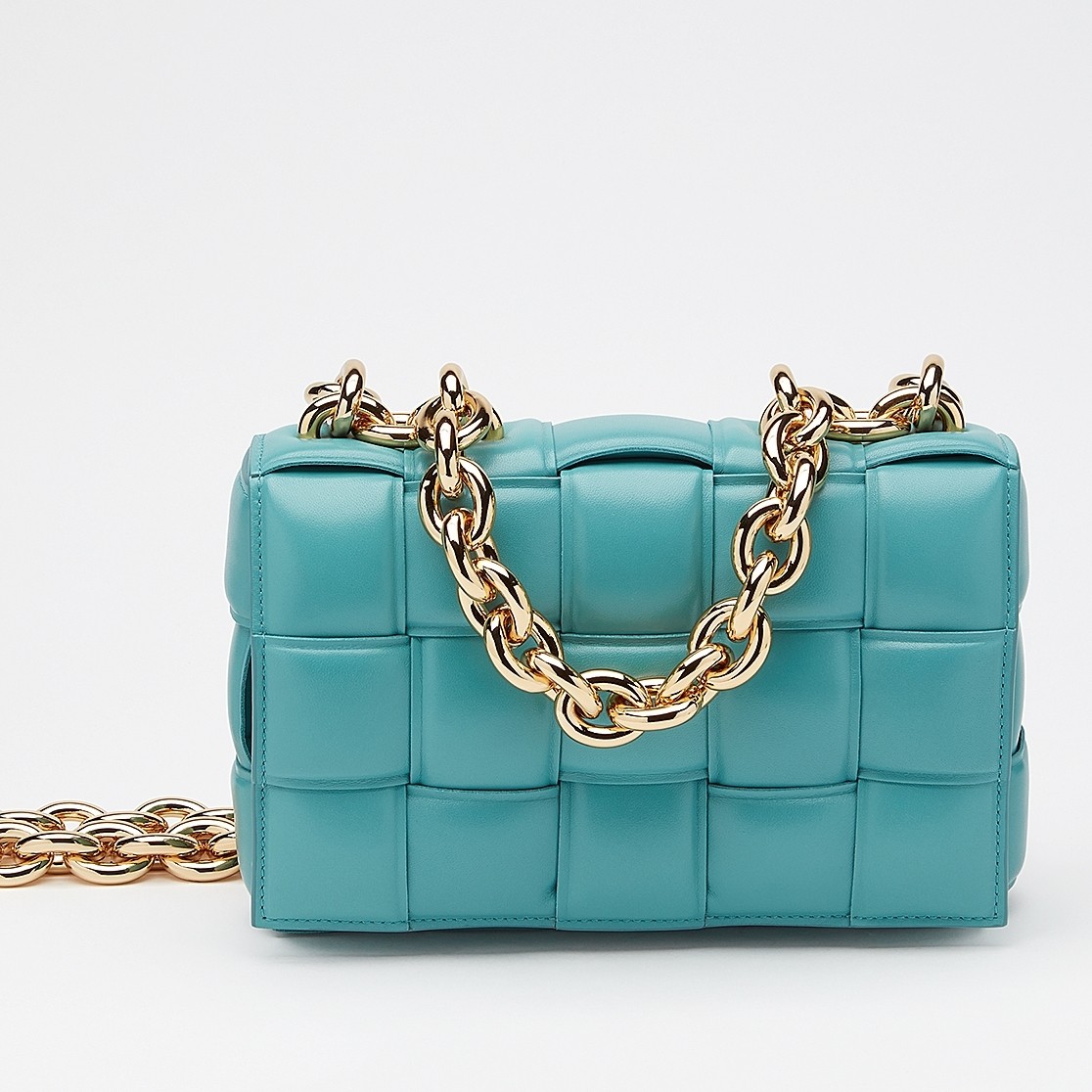 Daniel Lee takes Bottega Veneta’s signature intrecciato weave and reworks it again – this time using padded strips of leather to create a puffy silhouette. This ‘Cassette’ shoulder bag unlocks to reveal a spacious interior with a zipped pocket. Match any jewelry to the chunky gold chain strap, which happens to be another new addition for Pre-Fall ’20.