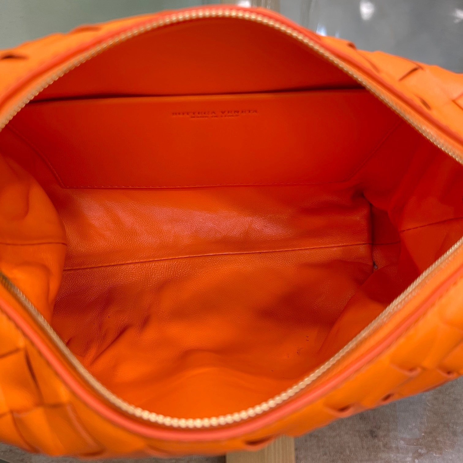 Seien Sie der Erste, der "Bottega Veneta Loop Small Bag In Orange Intrecciato Lambskin" bewertet.
