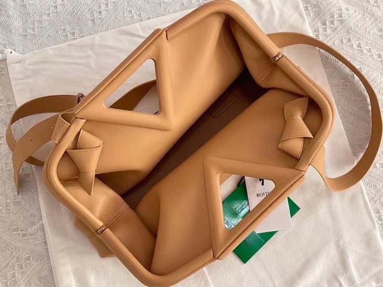 Bottega Veneta Medium Point Top Handle Bag In Beige Leather