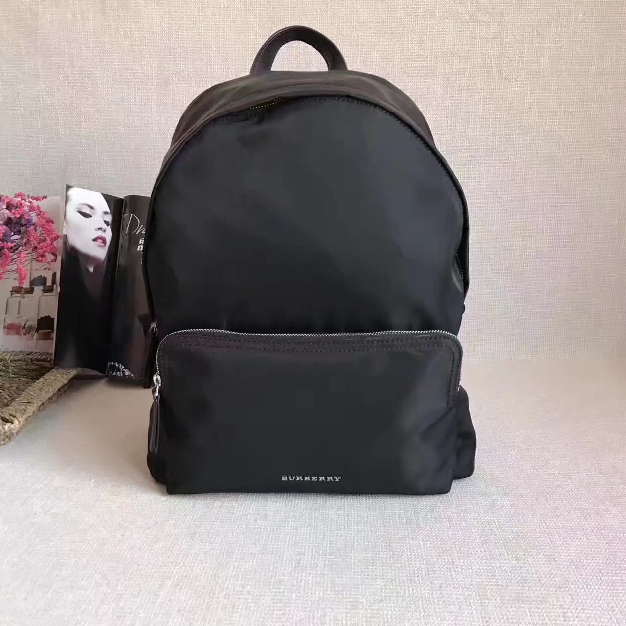 Burberry Leather Trim Nylon Men Backpack