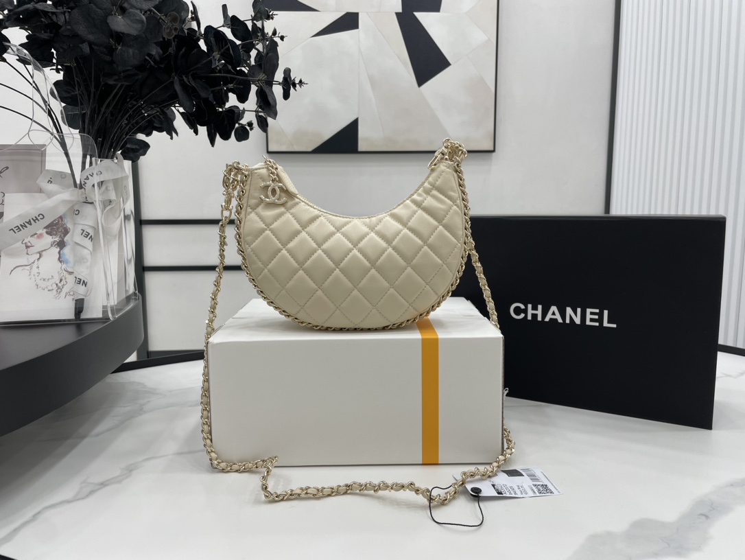 Chanel 23P AP3232 Clutch With Chain Lambskin Shiny Light Gold Metal Lilac Beige