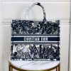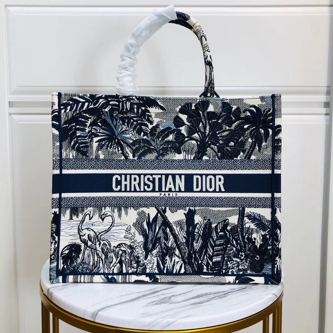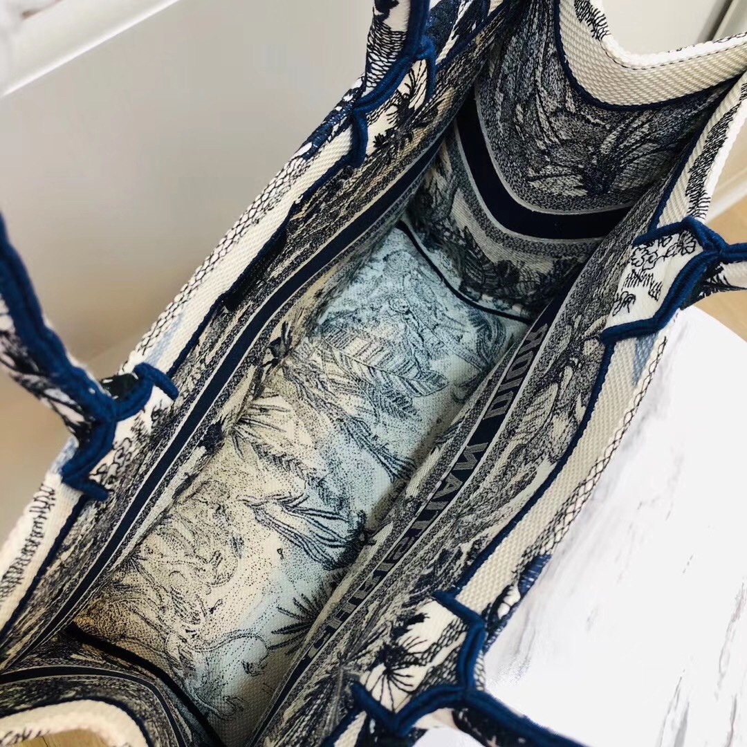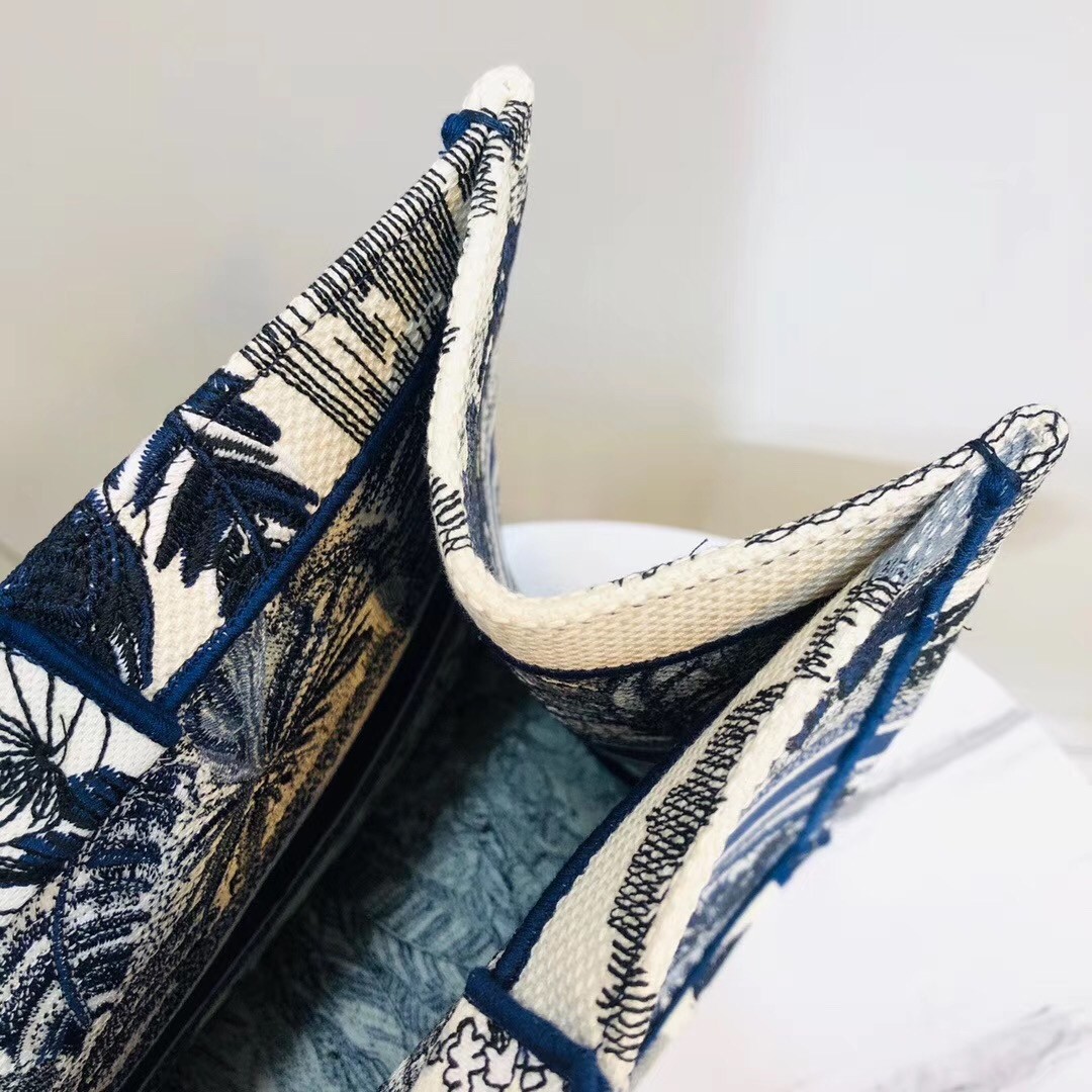 Dior Book Tote Bag In Blau Palm Tree Toile de Jouy Stickerei