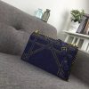 This Diorama bag reinvents the raw wild spirit of the 2018 Cruise collection. It has a modern look thanks to the combination of denim and metal studs in an antique gold color, creating the Archicannage motif. Wear it across the body thanks to its metal chain in antique gold.