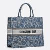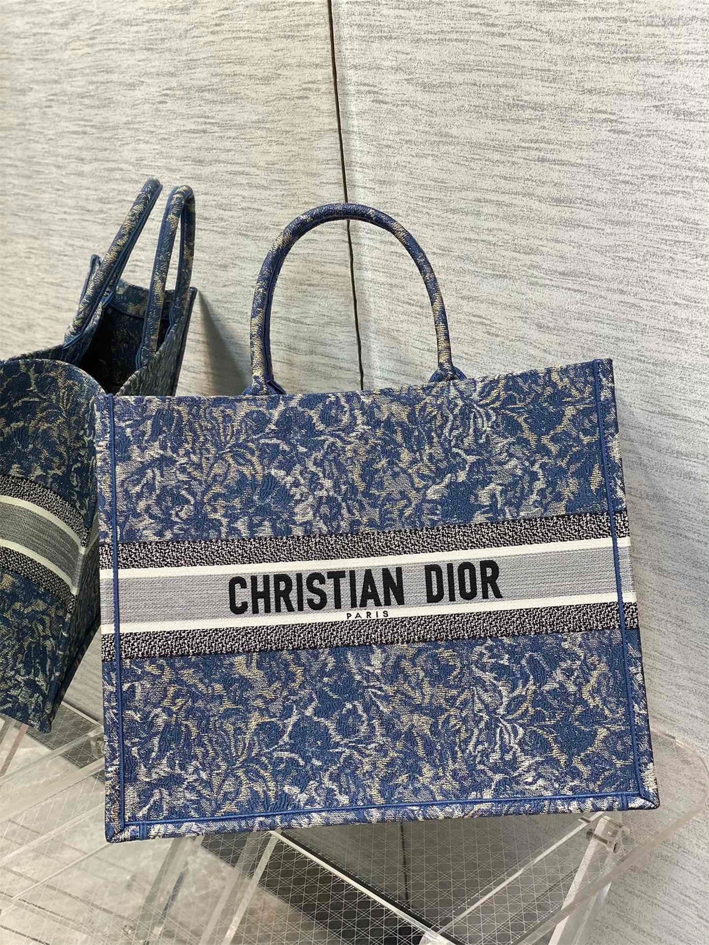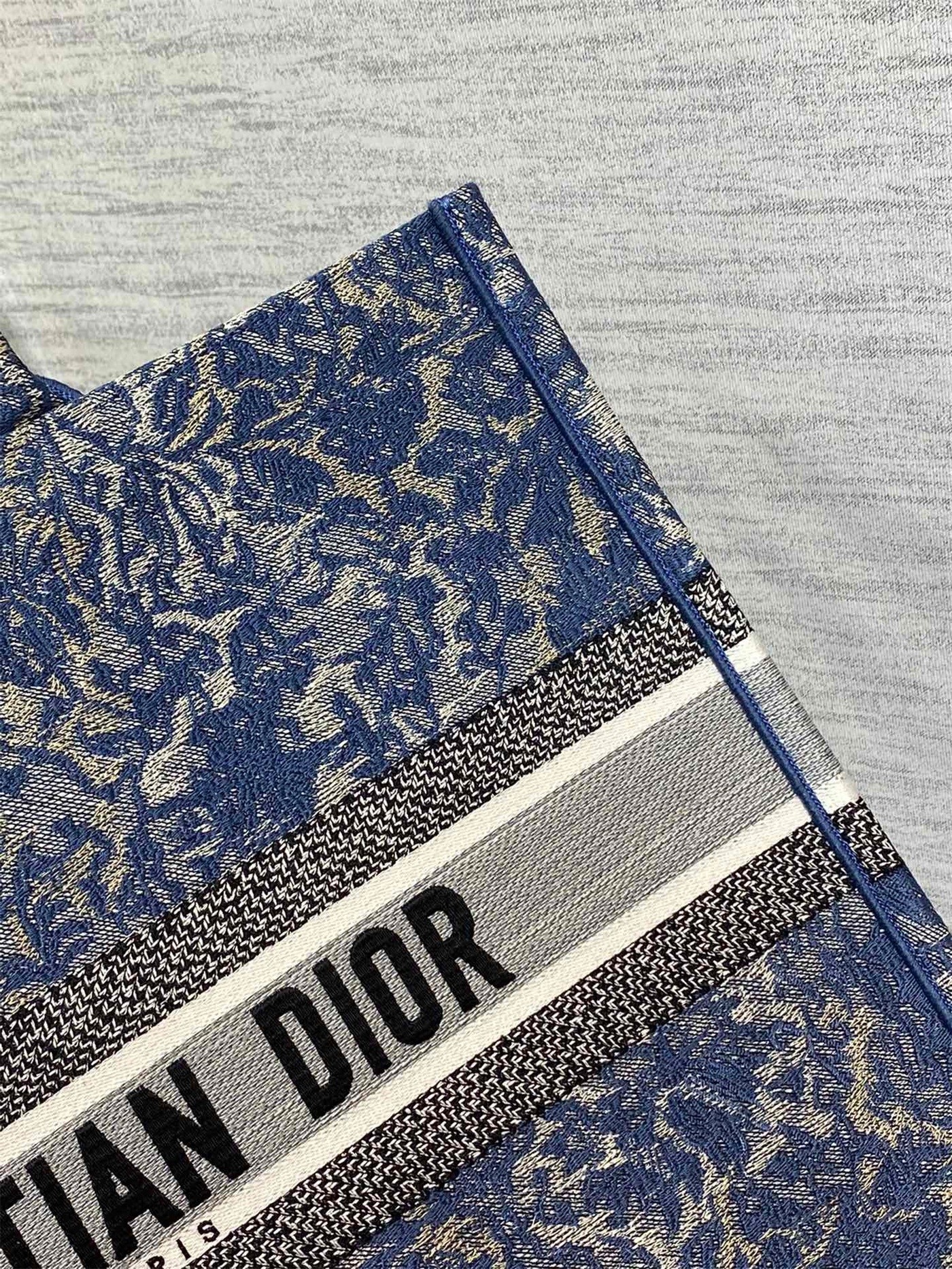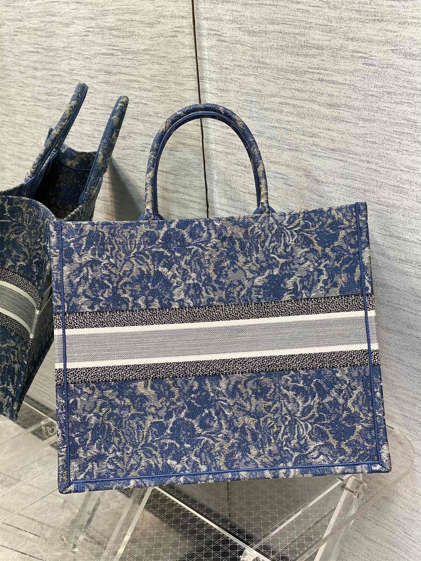 Dior Large Book Tote Bag In Blue Brocart Denim-Effect Embroidery