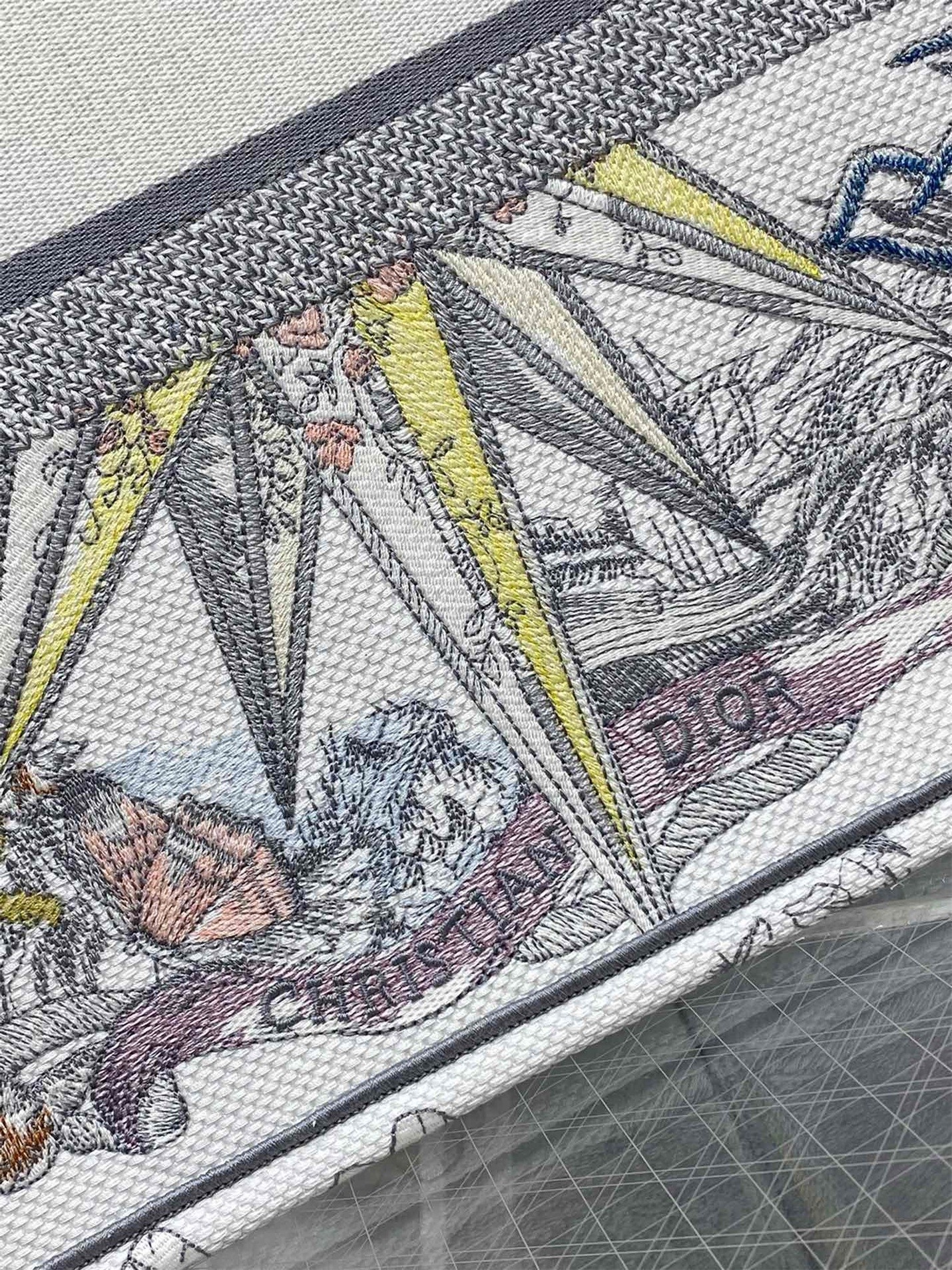 The Dior Book Tote is an original creation introduced by Dior’s Creative Director, Maria Grazia Chiuri, and has become a staple of the Dior aesthetic. Designed to hold all the daily essentials, it is fully embroidered with the R??ve d’Infini motif by artist Pietro Ruffo, offering a dreamlike new take on Christian Dior’s favorite star symbol and essential House code. Adorned with a ‘CHRISTIAN DIOR PARIS’ signature on the front, the large tote exemplifies the House’s signature savoir-faire and may be carried by hand or worn over the shoulder.
