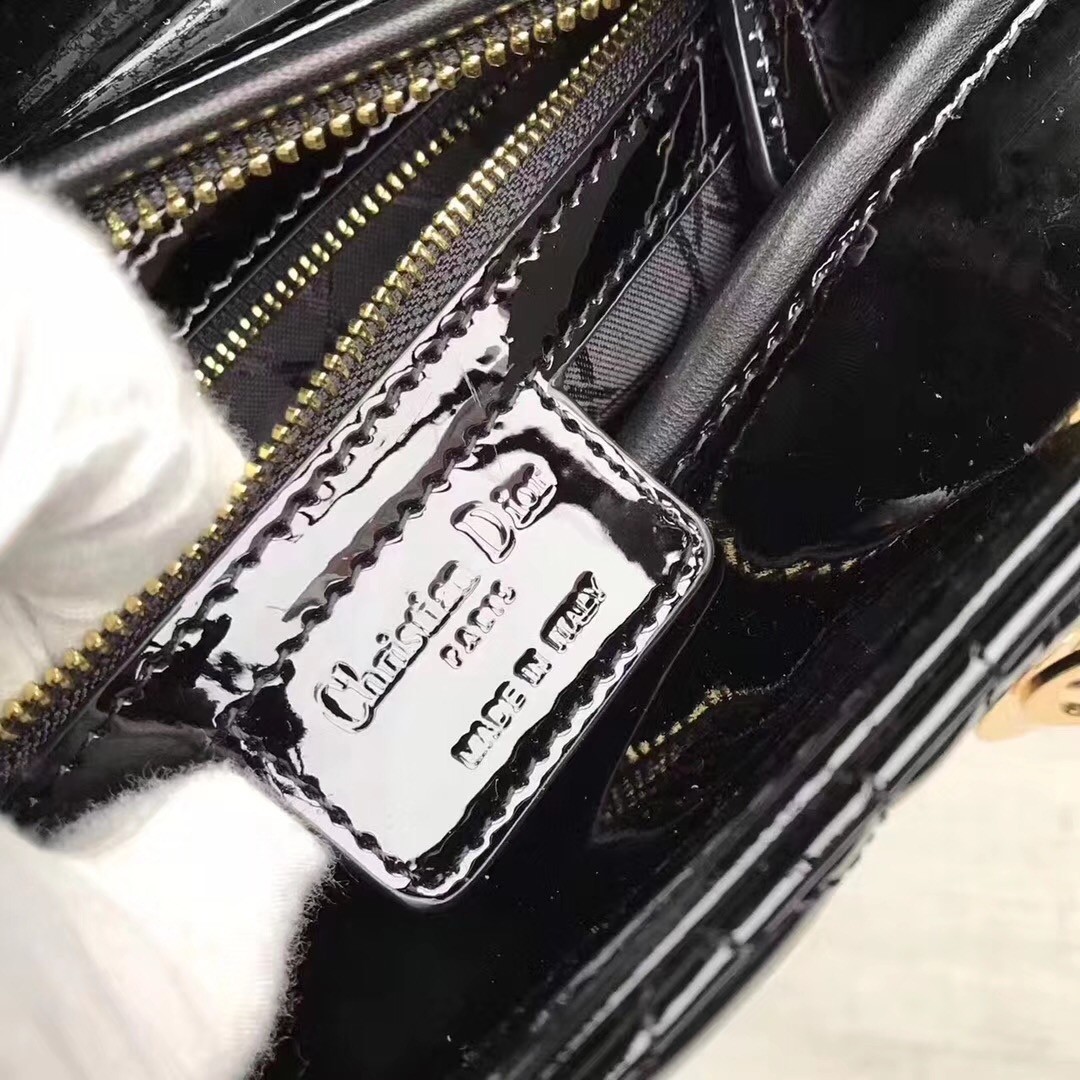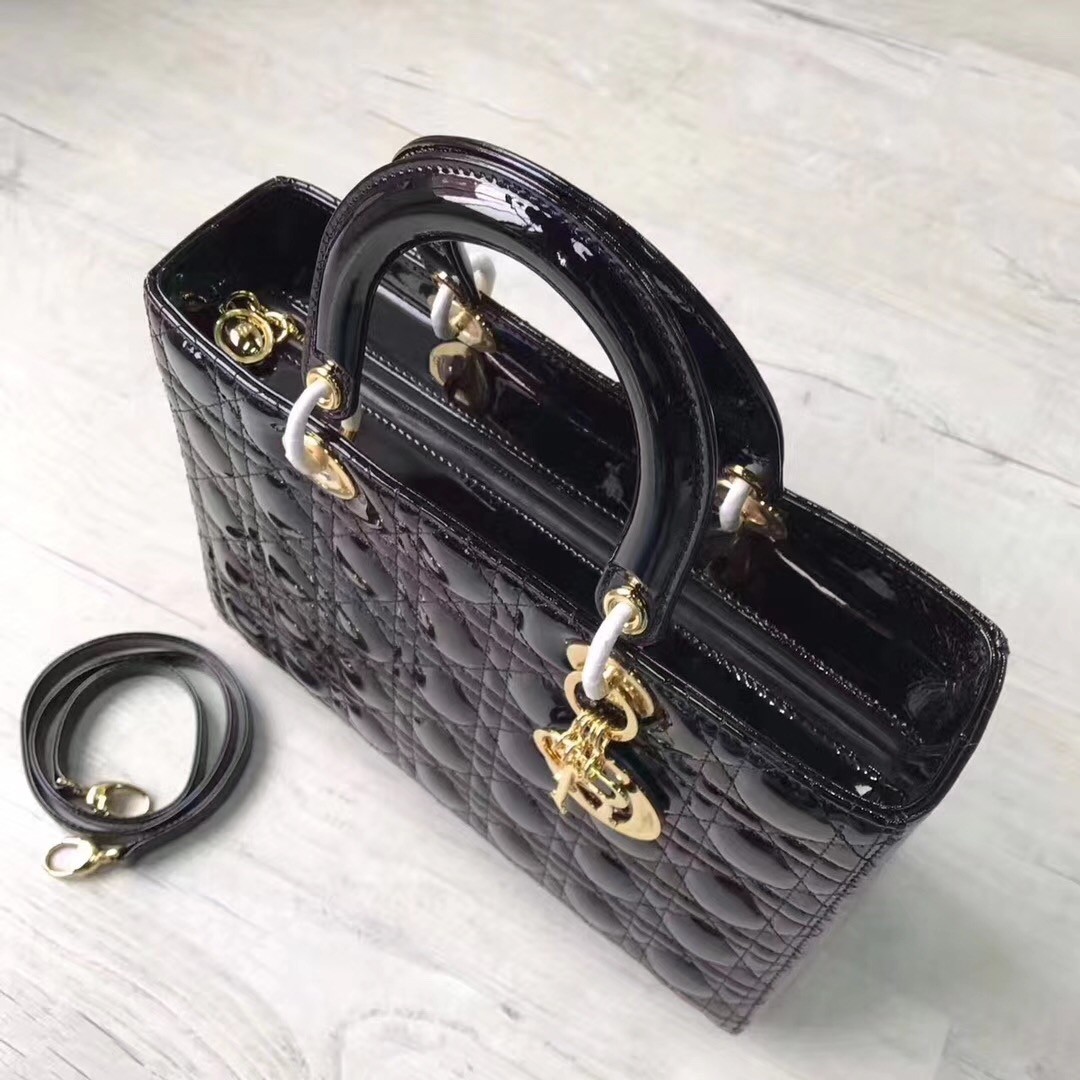 Dior Large Lady Dior Bag In Black Patent Leather