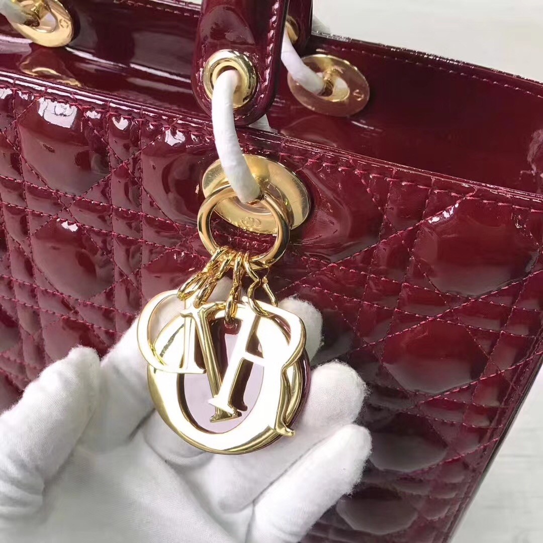 Dior Große Lady Dior Tasche In Bordeaux Lackleder