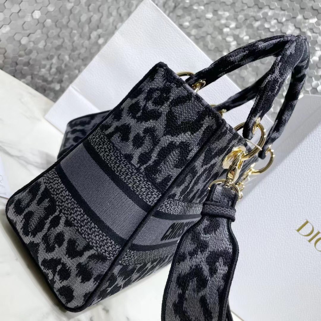 The Lady D-Lite bag combines classic elegance with House modernity. The style is fully embroidered with a Mizza motif, inspired by a leopard motif from the House archives. The front features a ‘CHRISTIAN DIOR’ signature while the thick ‘D.I.O.R.’ charms in pale gold-finish metal further enhance the silhouette. Equipped with a wide, reversible and removable embroidered shoulder strap, the medium Lady D-Lite bag can be carried by hand, worn over the shoulder or crossbody.