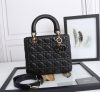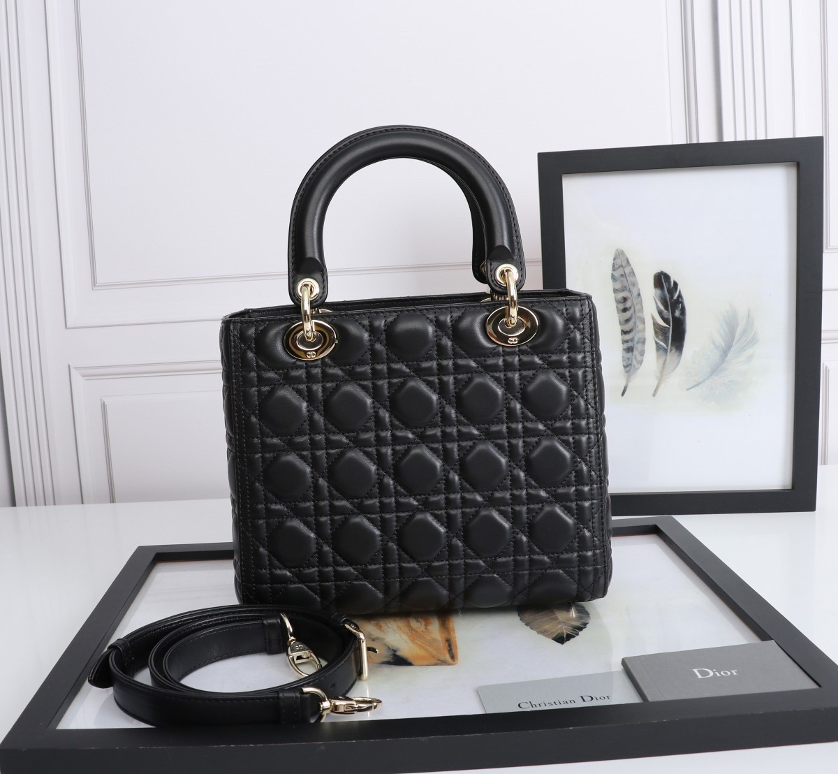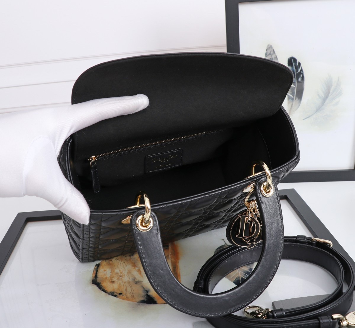 Dior Medium Lady Dior Tasche mit Emaille-Charme In schwarzem Lammleder