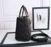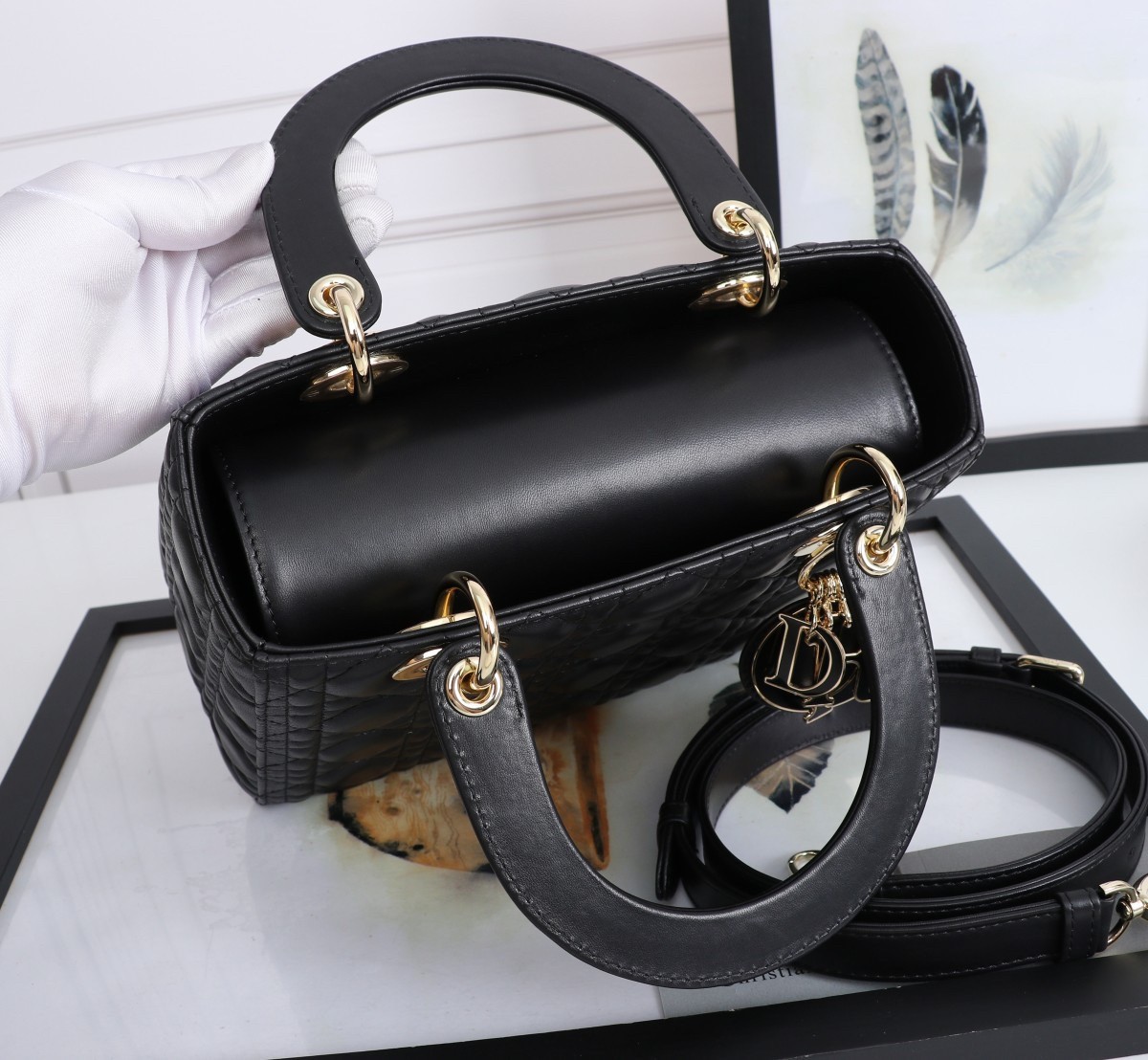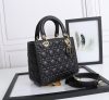 The Lady Dior bag epitomizes Dior’s vision of elegance and beauty. Sleek and refined, the timeless style is crafted in lambskin with Cannage stitching, creating the instantly recognizable quilted texture, while the tonal enamel ‘D.I.O.R.’ charms further embellish its silhouette. Featuring a thin, removable leather shoulder strap, the medium Lady Dior bag can be carried by hand or worn crossbody.