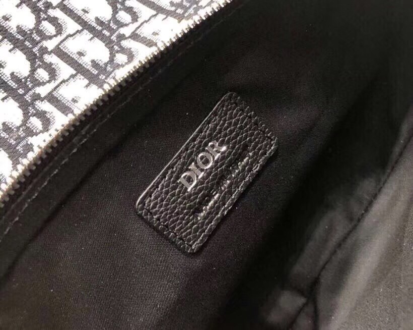 – Adjustable shoulder strap in black Christian Dior jacquard with black grained calfskin trim and CD buckle