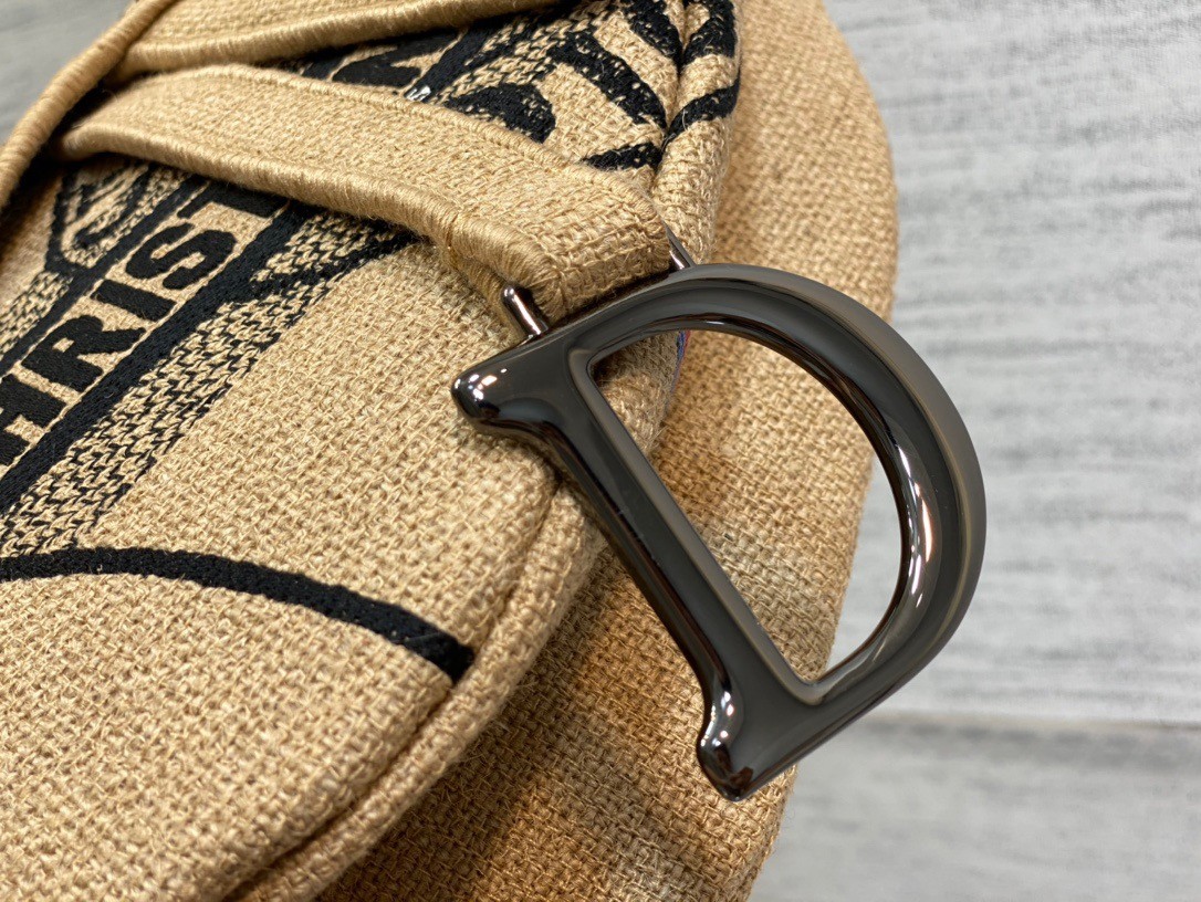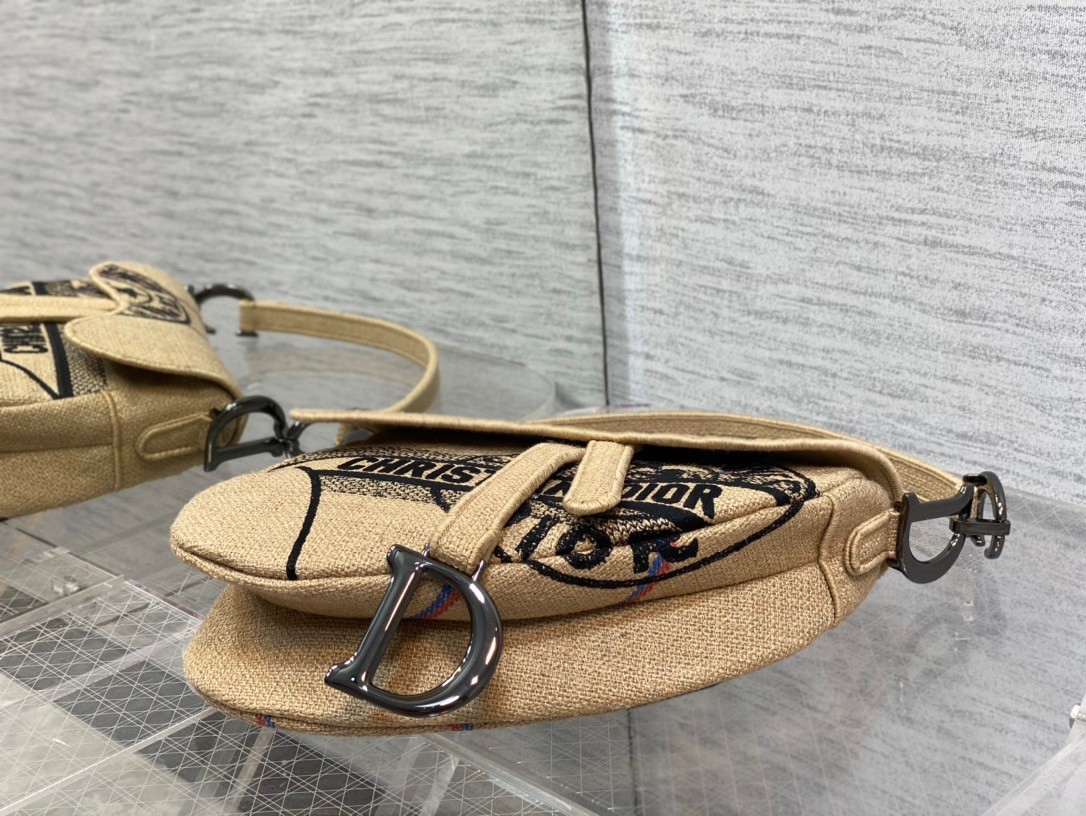 Dior Satteltasche aus beigem Juteleinen mit Dior Union-Motiv