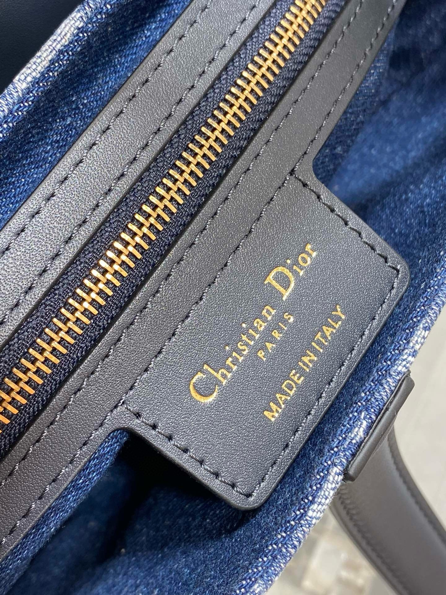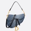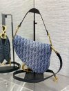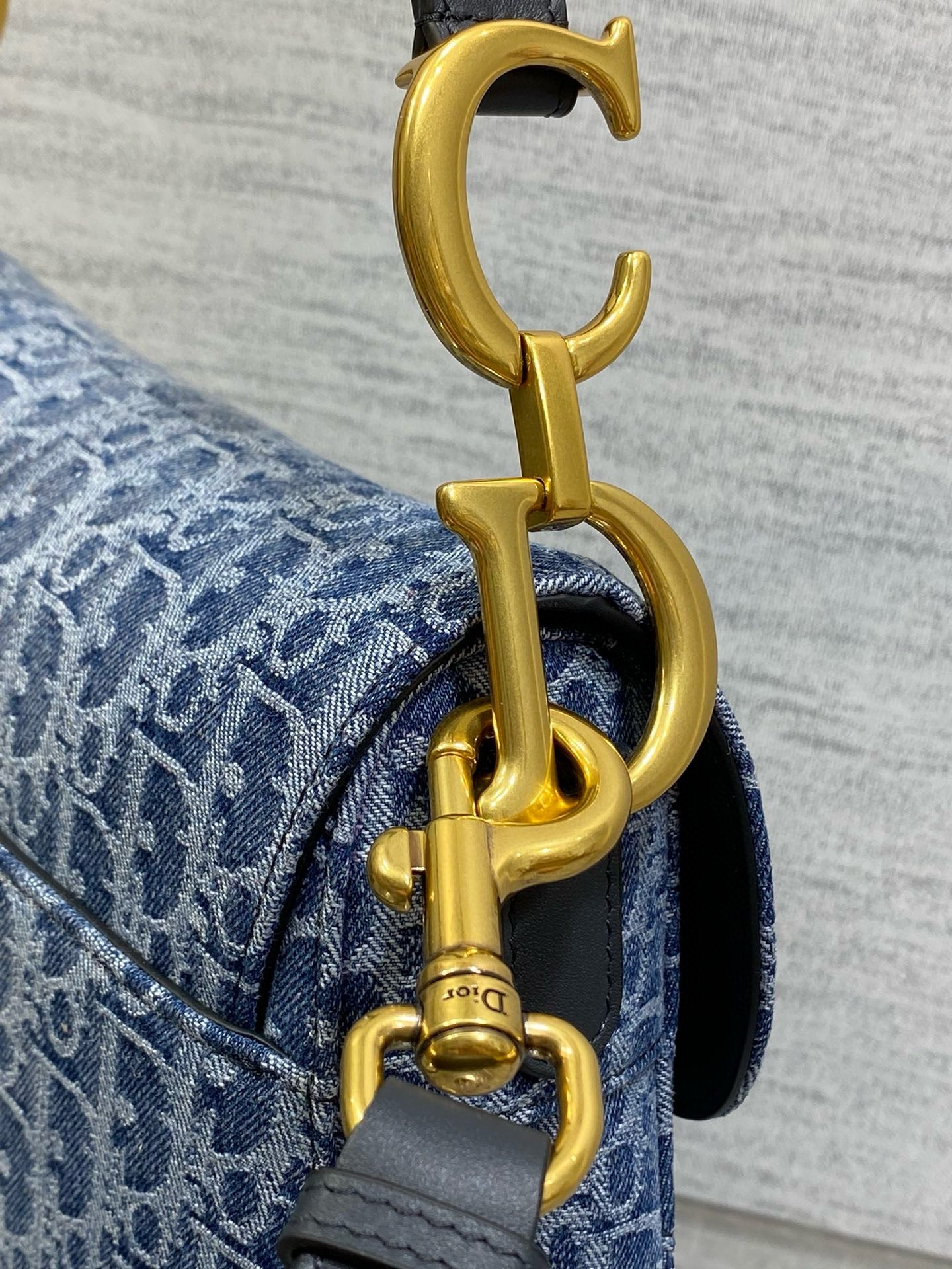 Dior Satteltasche mit Riemen aus blauem Denim Schrägjacquard