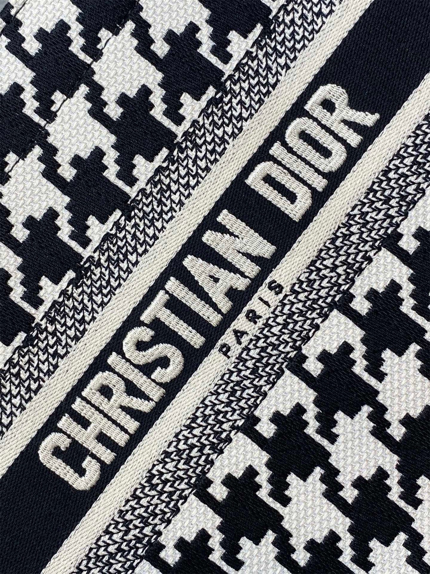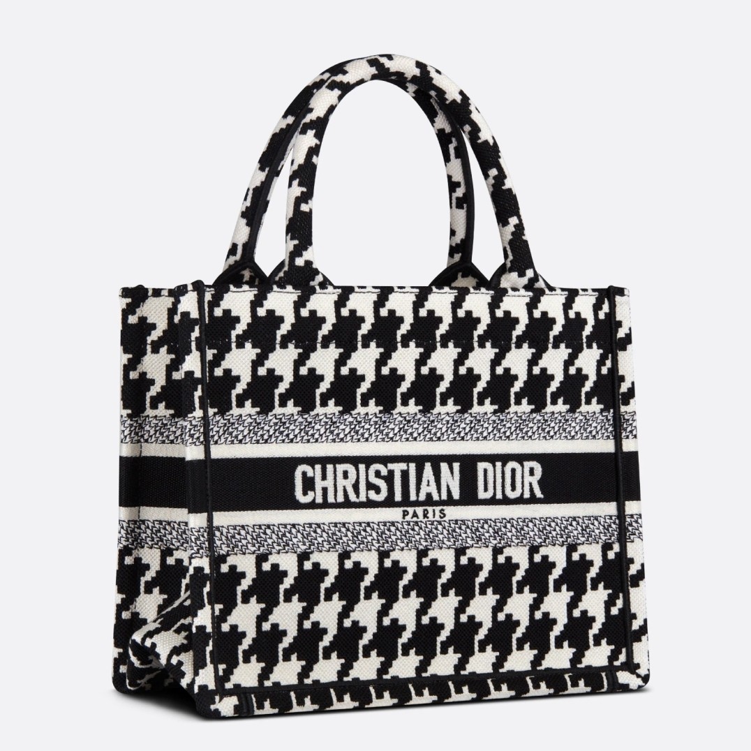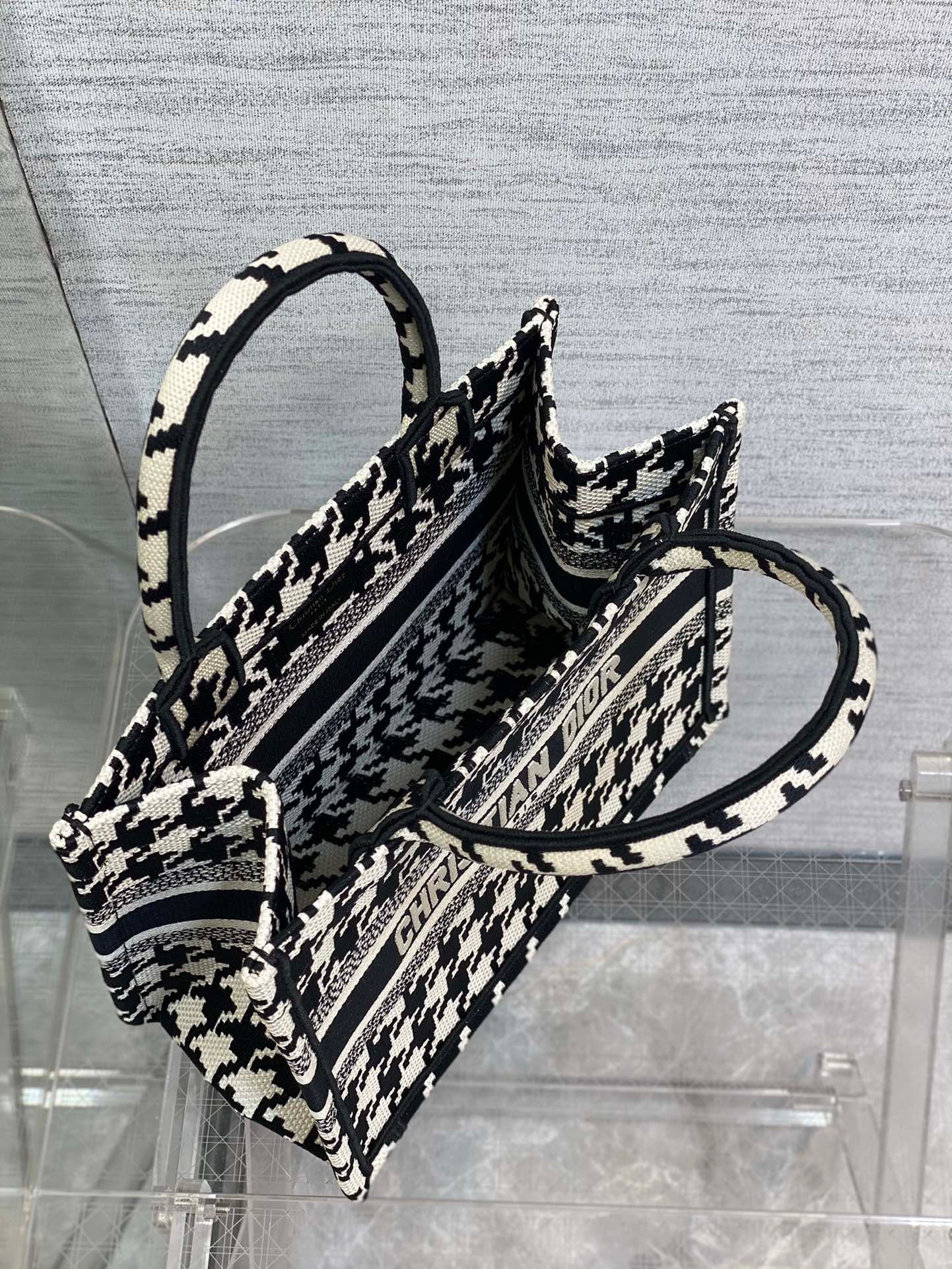 Dior Small Book Tote Bag In Micro Houndstooth Embroidery