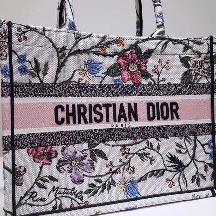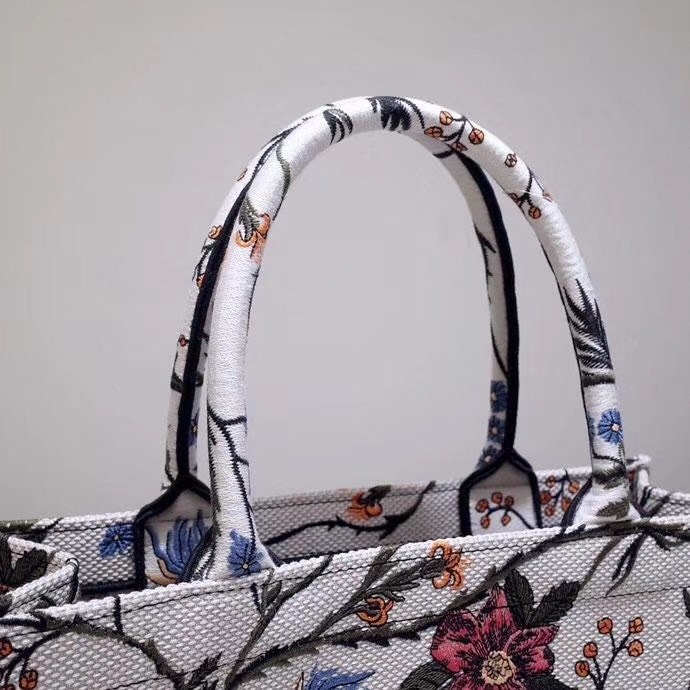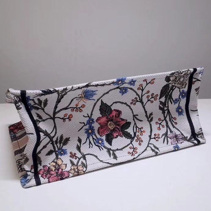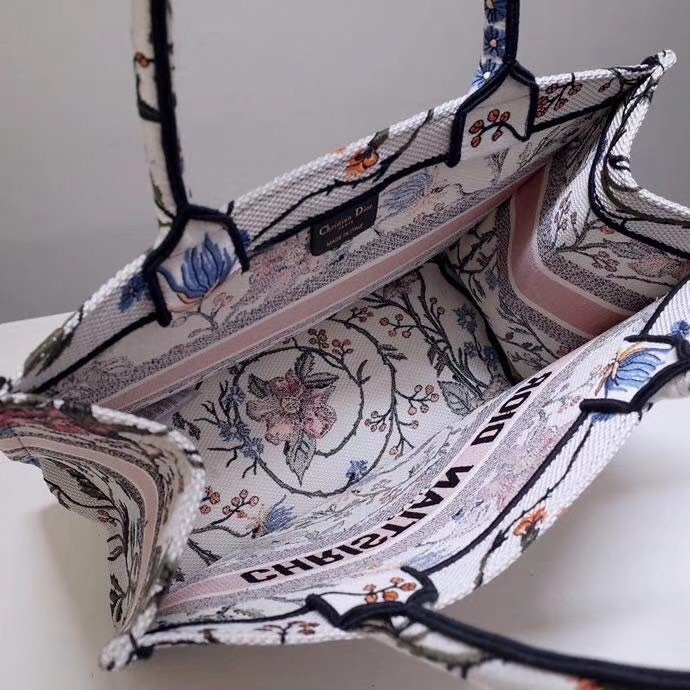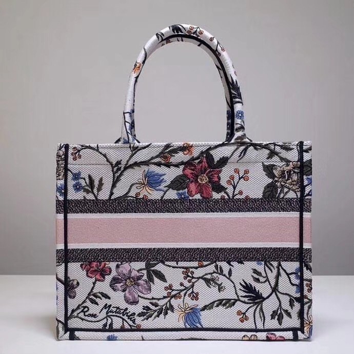 Dior Small Book Tote In Multicolor Rosa Mutabilis Embroidery