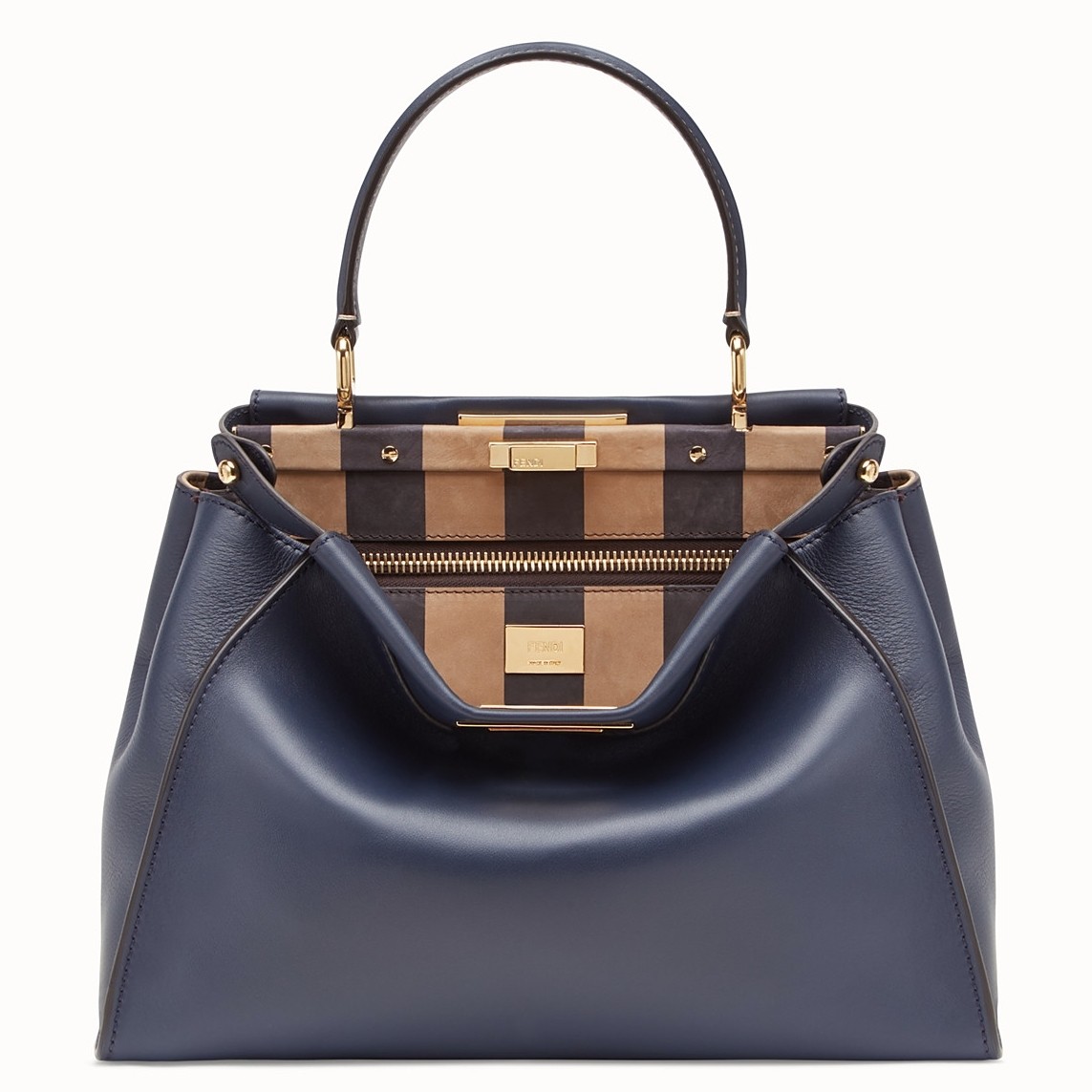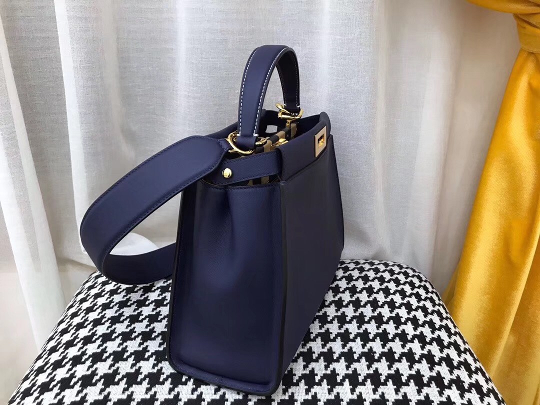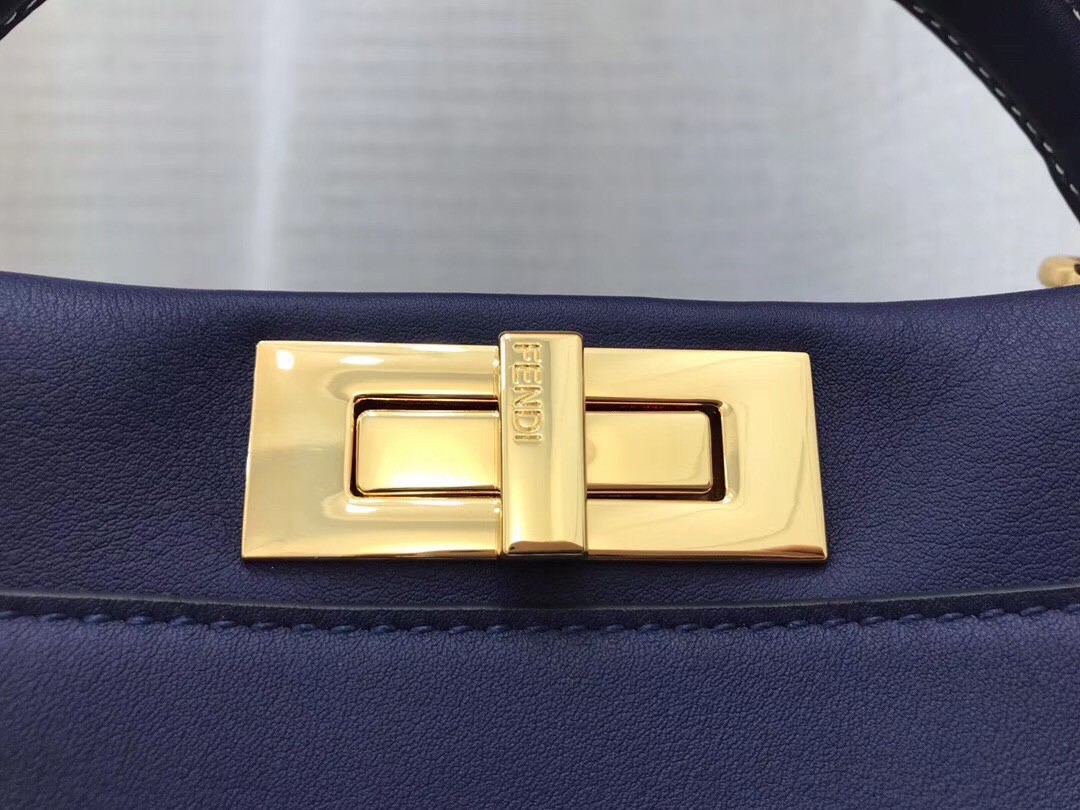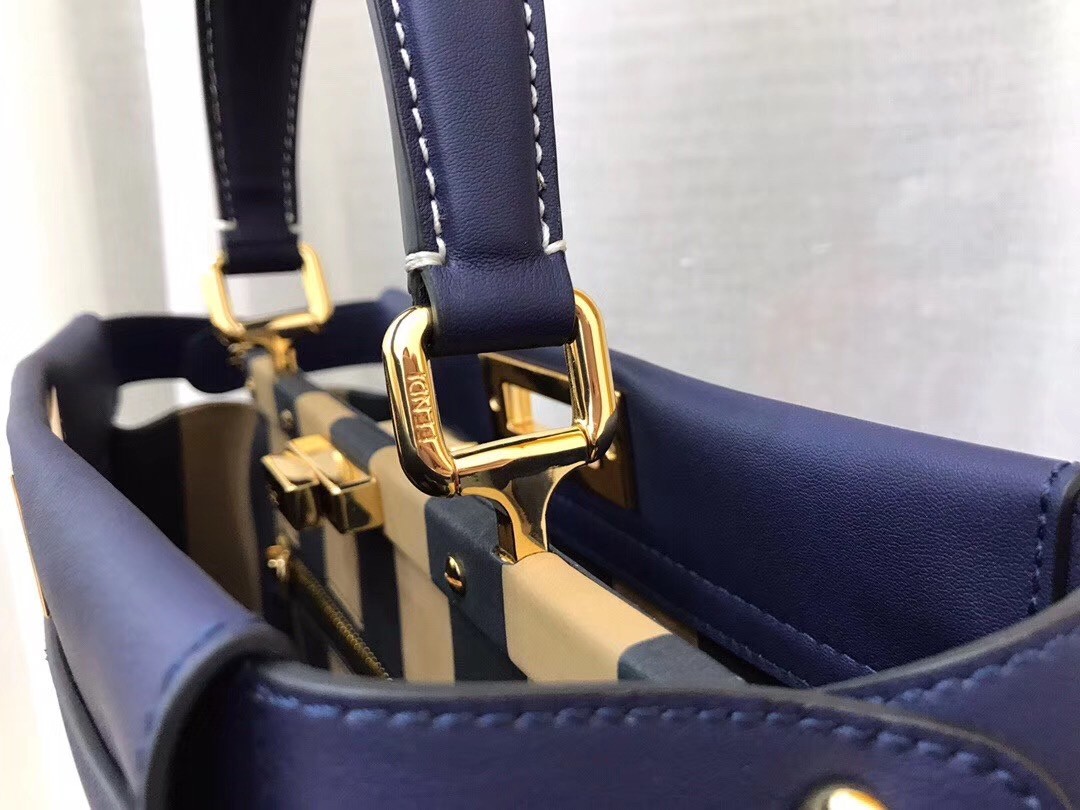 Fendi Blau Peekaboo Medium Tasche mit Pequin-Motiv