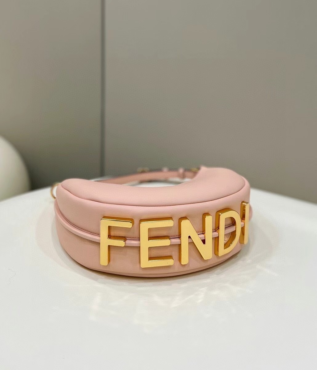 Revealed on brand’s Spring/Summer 2022 runway, the Fendigraphy Bag is Fendi’s take on the timeless hobo silhouette and the fashion crowd is already obsessed! Defined by a crescent shape with a spacious carry-all design, the Fendigraphy bag is a modern and bold icon ?C the new must-have for the powerful and confident Fendi woman. Once worn, the bag will stun with its maxi Fendi golden metal script, leaving the iconicity of the Maison’s logo on display for everyone to see. Wearability being so dear to Fendi, the bag fits perfectly under the arm thanks to its circular armhole. Its removable and adjustable strap allows you to transform it into a soft and supple satchel bag with a functional crossbody attitude if paired with a Strap You.