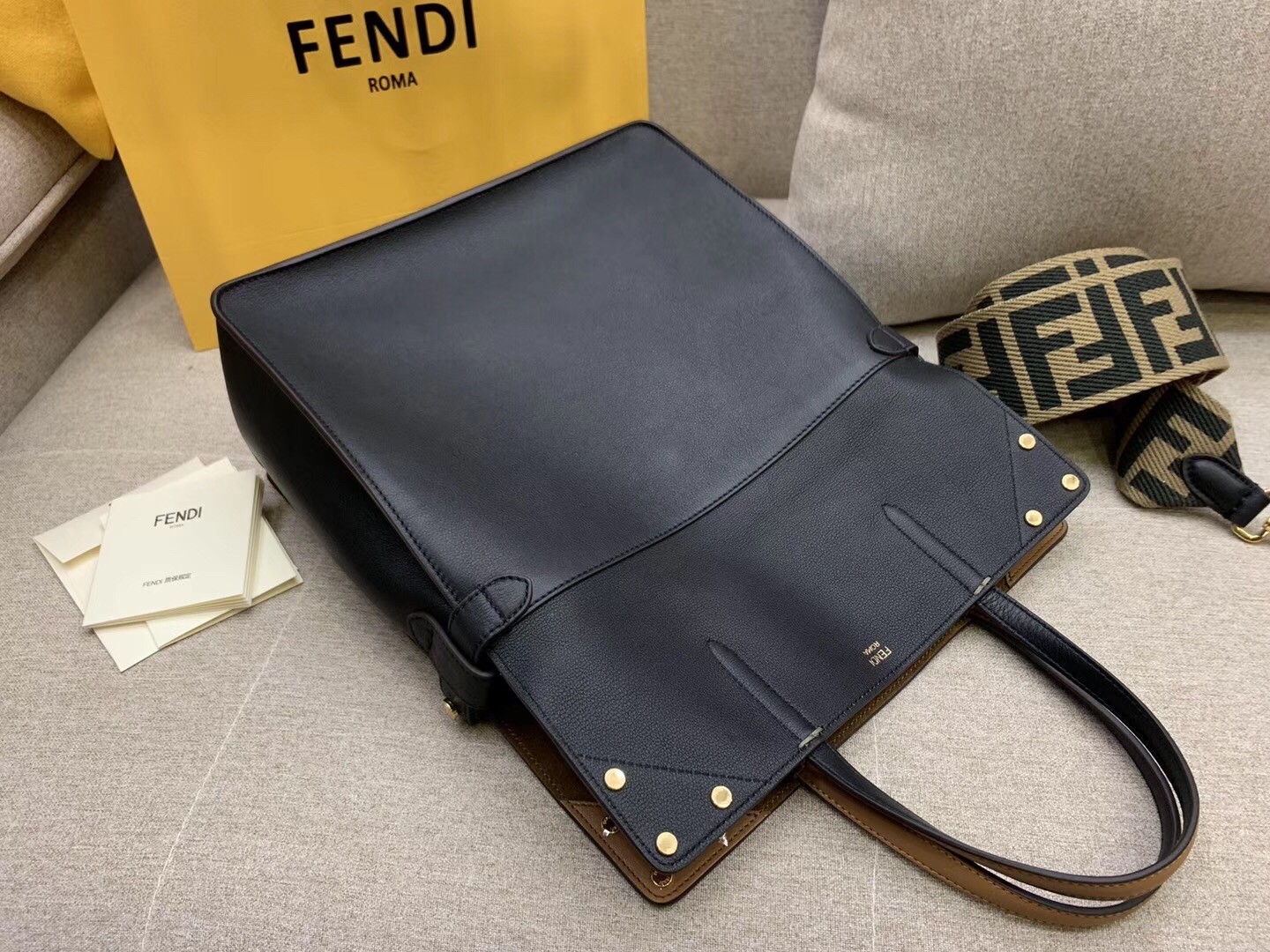 Fendi Große Flip Tote Tasche aus schwarzem Kalbsleder