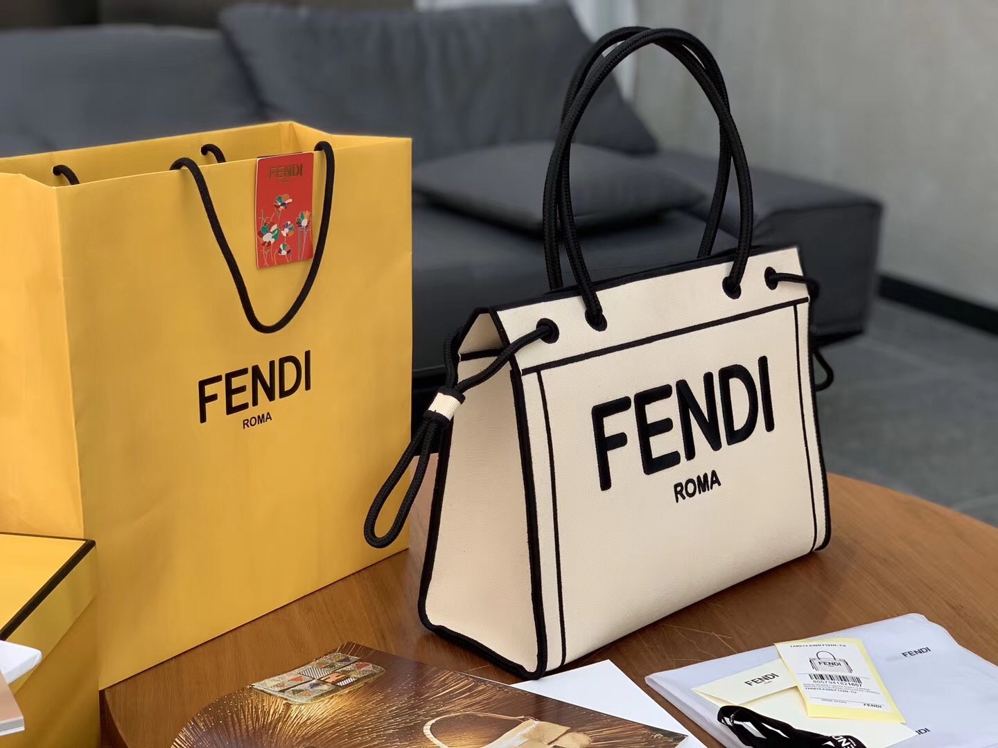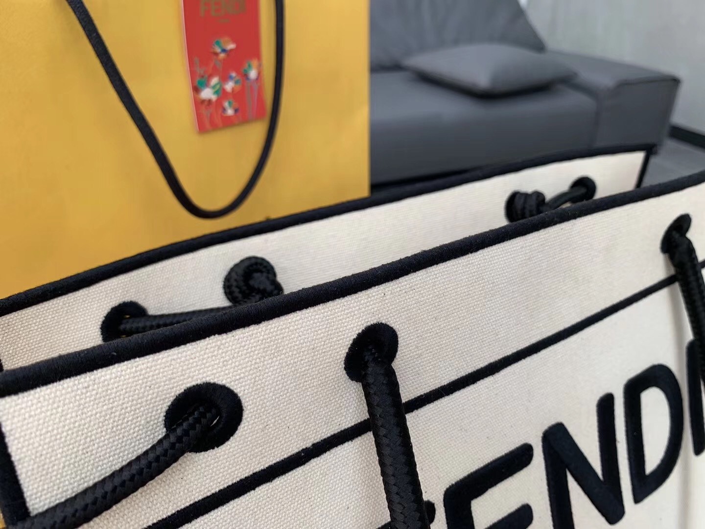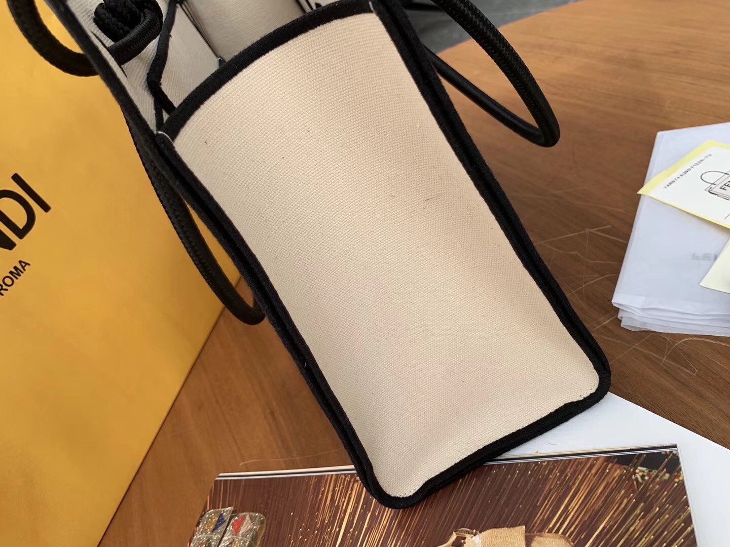 Fendi Große Roma Shopper Tasche aus ungefärbtem Segeltuch
