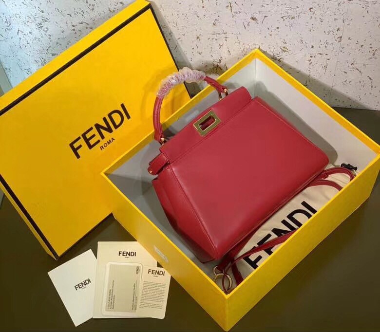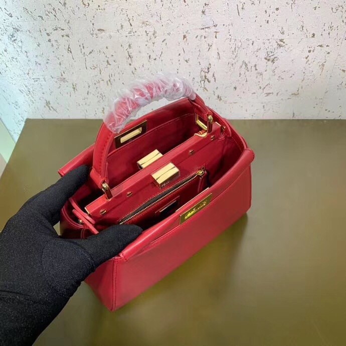 Fendi Peekaboo Mini Tasche aus rotem Nappaleder