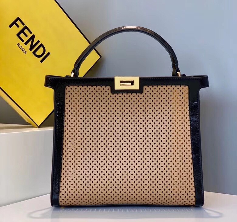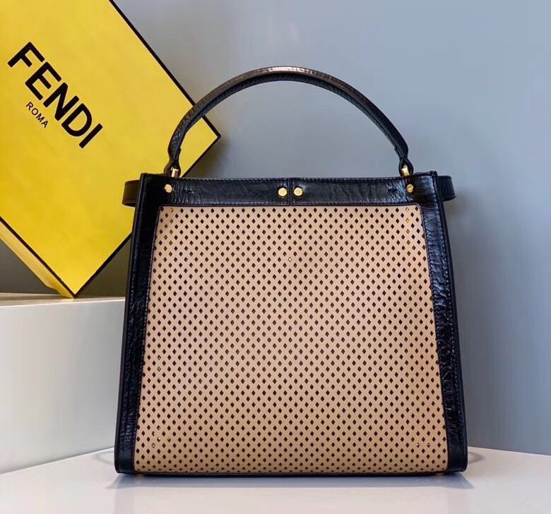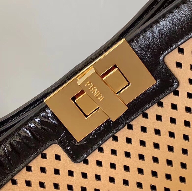 Fendi Peekaboo X Lite Medium Tasche In Beige Perforierte Leder