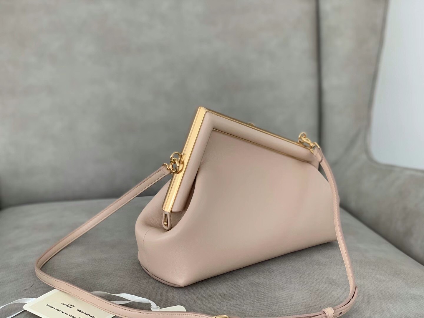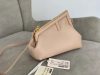 Kim Jones introduces the First bag, a soft clutch silhouette with the iconic ??F?? logo incorporated into its fastening. This bag made of soft nappa leather with oversized metal F clasp bound with tone on tone nappa leather. You can style the First by hand as a clutch or worn on the shoulder thanks to the detachable shoulder strap.