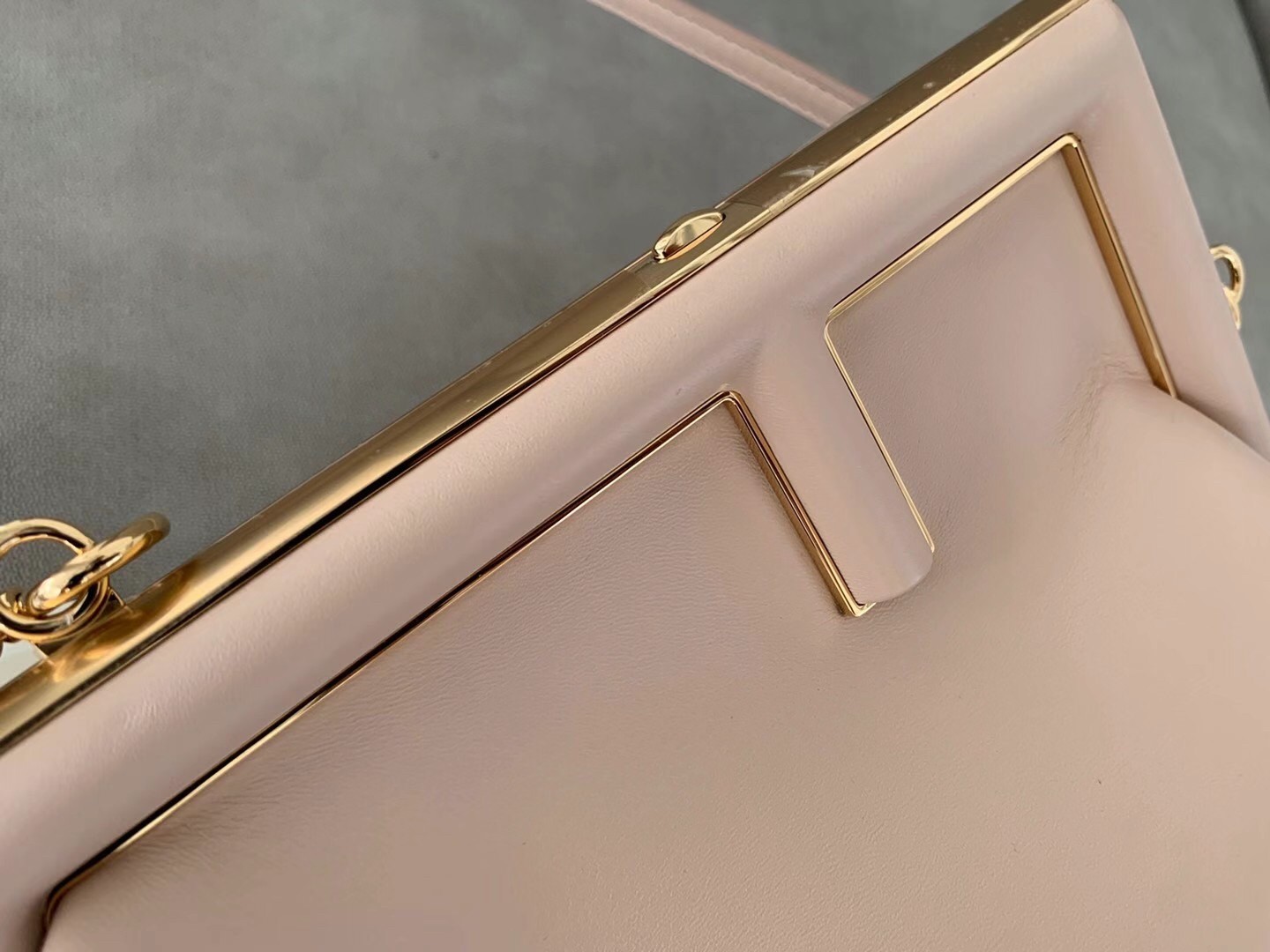 – oversized metal F clasp bound with tone on tone nappa leather