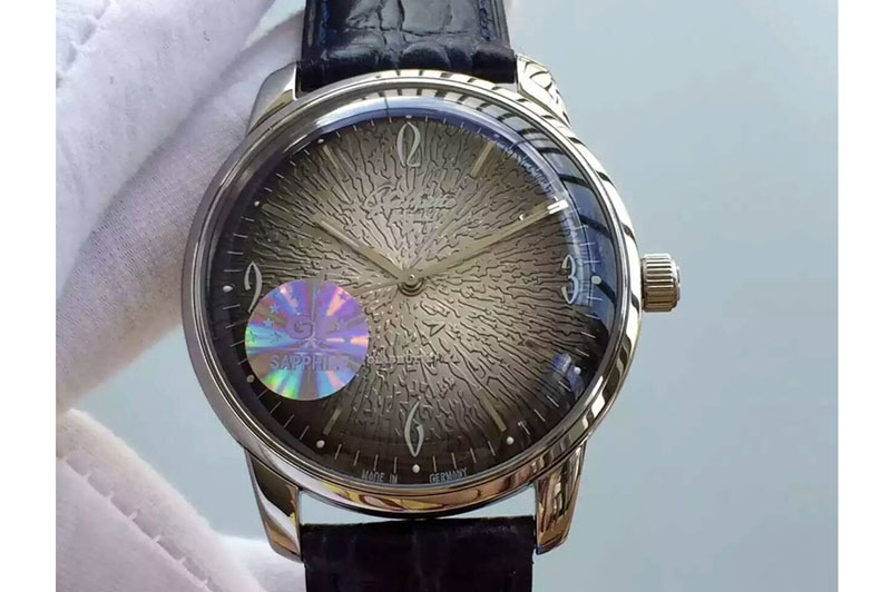 Glashutte Senator Automatic SS Gray Dial on Black Leather Strap A3959