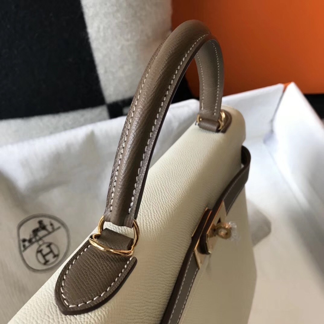 Hermes Bi-color Kelly 32cm Epsom Tasche Weiß/Taupe GHW