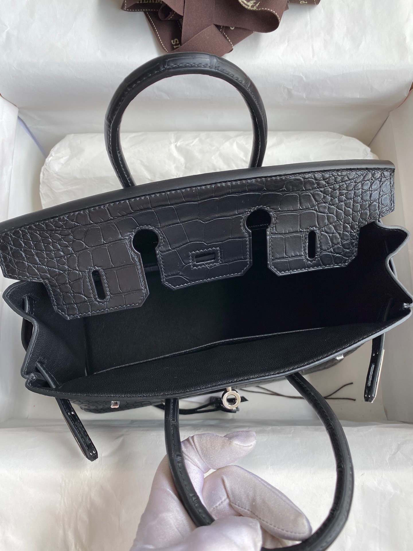 - Hermes Paris made in France auf der Vorderseite unter der Klappe eingeprägt
