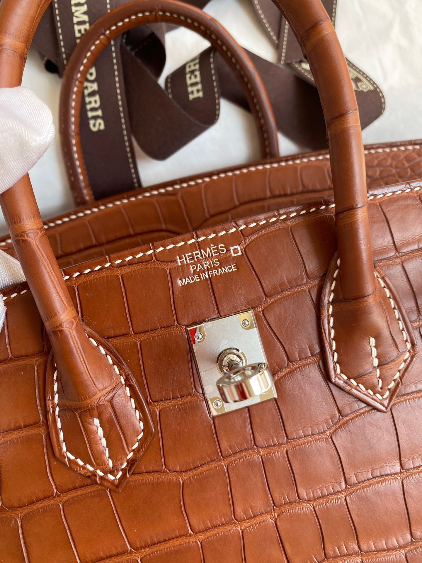 - Hermes Paris made in France auf der Vorderseite unter der Klappe eingeprägt