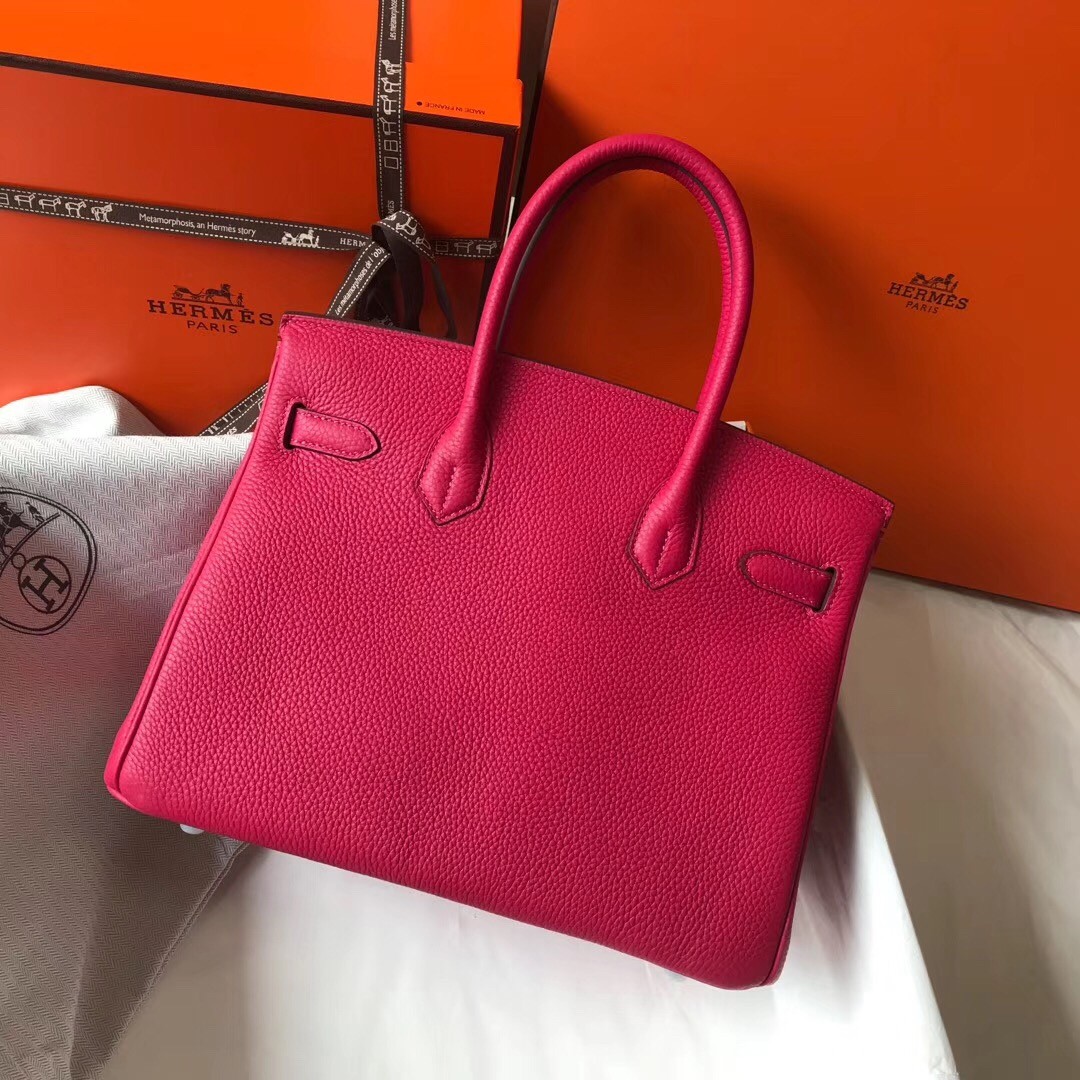 Hermes Birkin 30cm Tasche In Rose Rot Clemence Leder