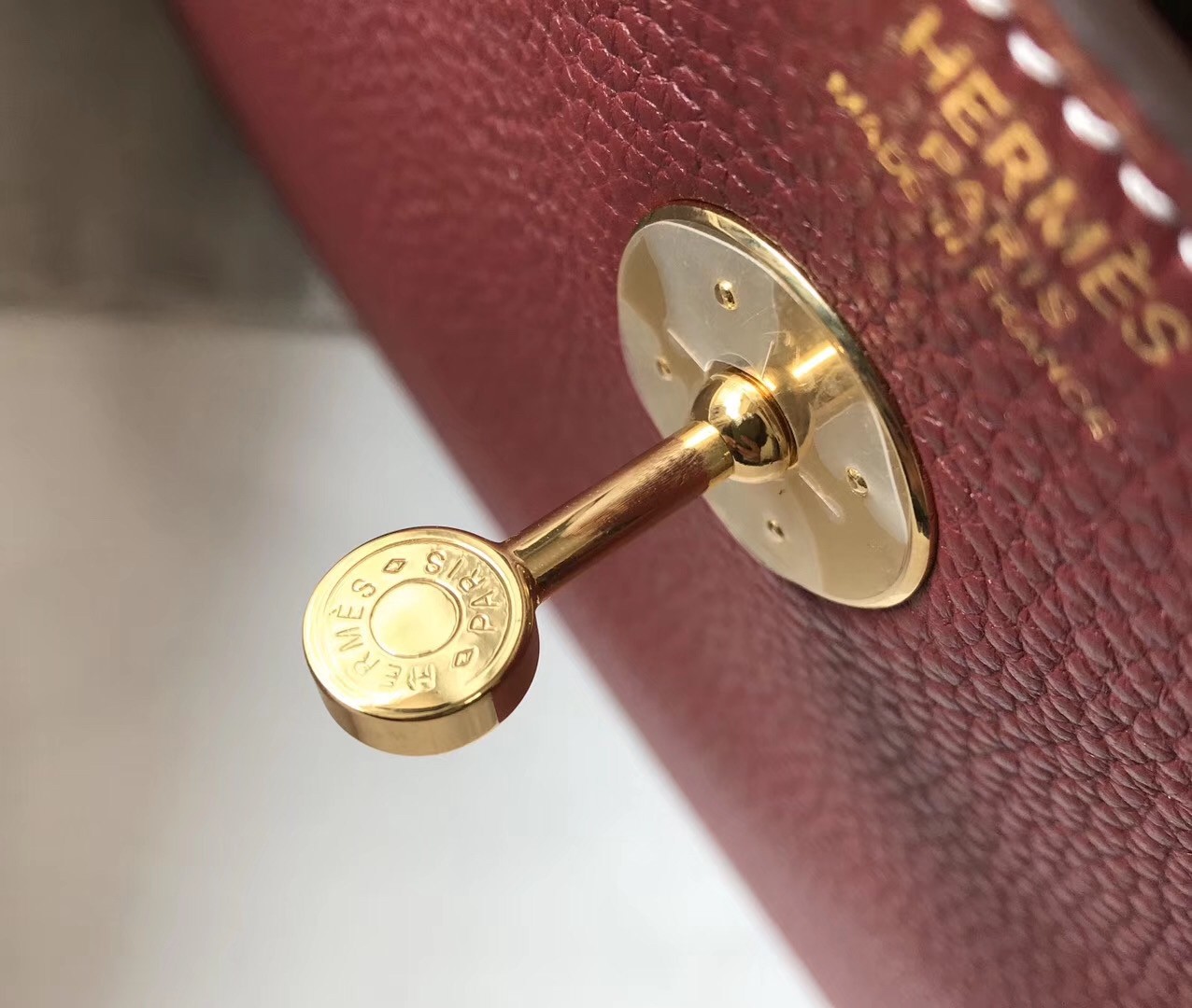 Hermes Bordeaux Clemence Lindy 30cm Tasche mit GHW