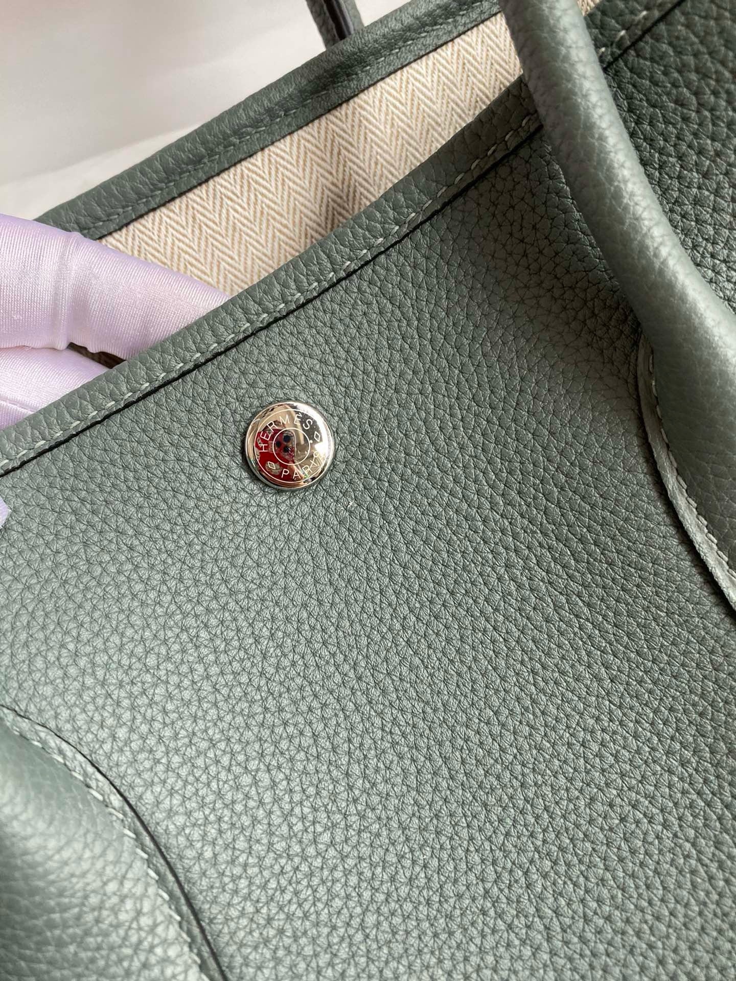 Hermes Garden Party 30 Handgefertigte Tasche in Vert Amande Clemence Leder