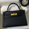 Hermes Kelly Mini II Sellier Handgefertigte Tasche In Schwarz Chevre Mysore Leder