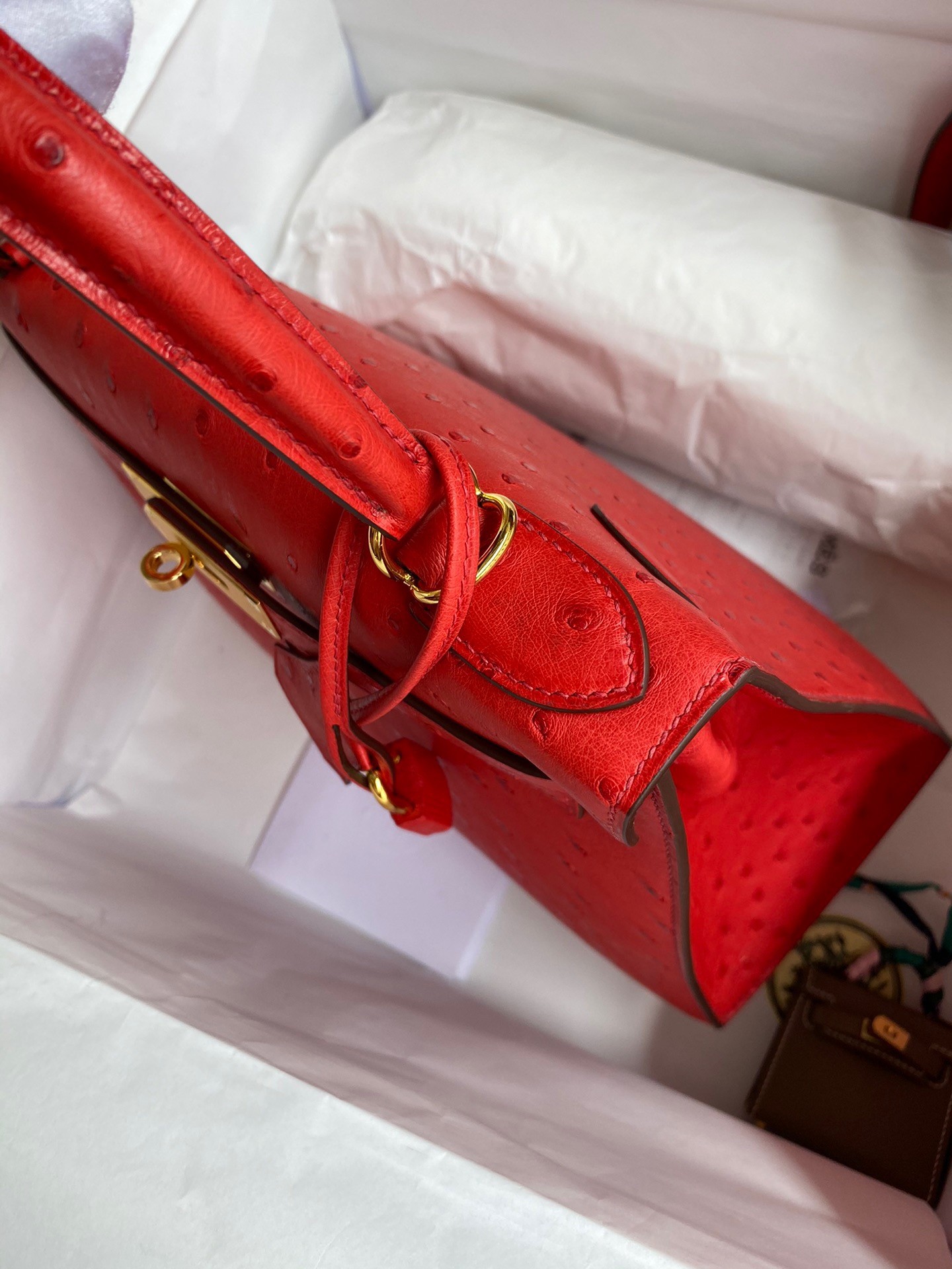 Hermes Kelly Sellier 28 Handmade Bag In Red Ostrich Leather