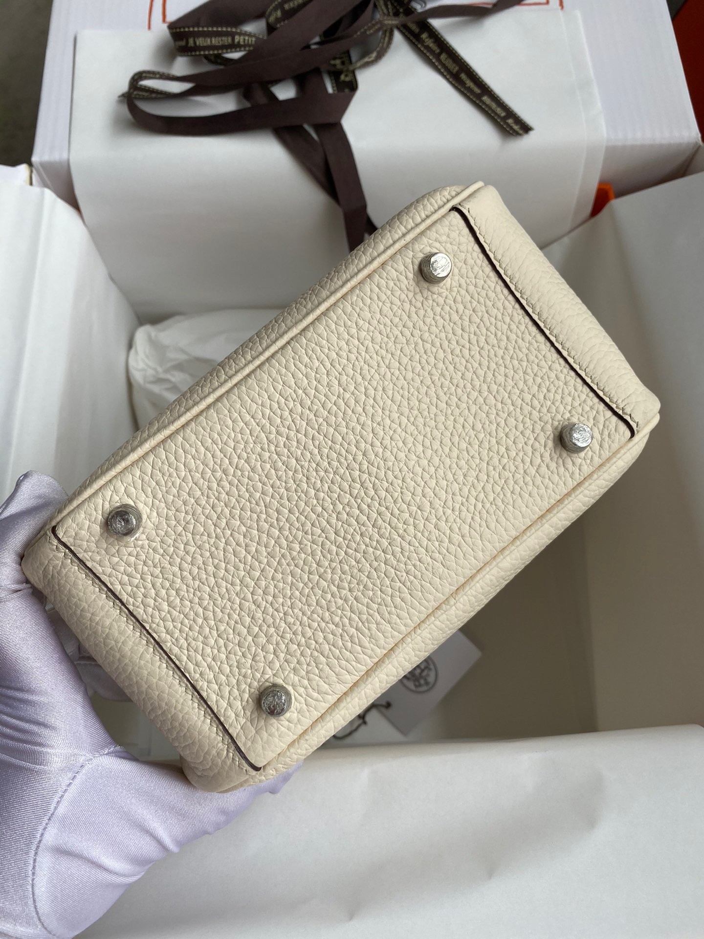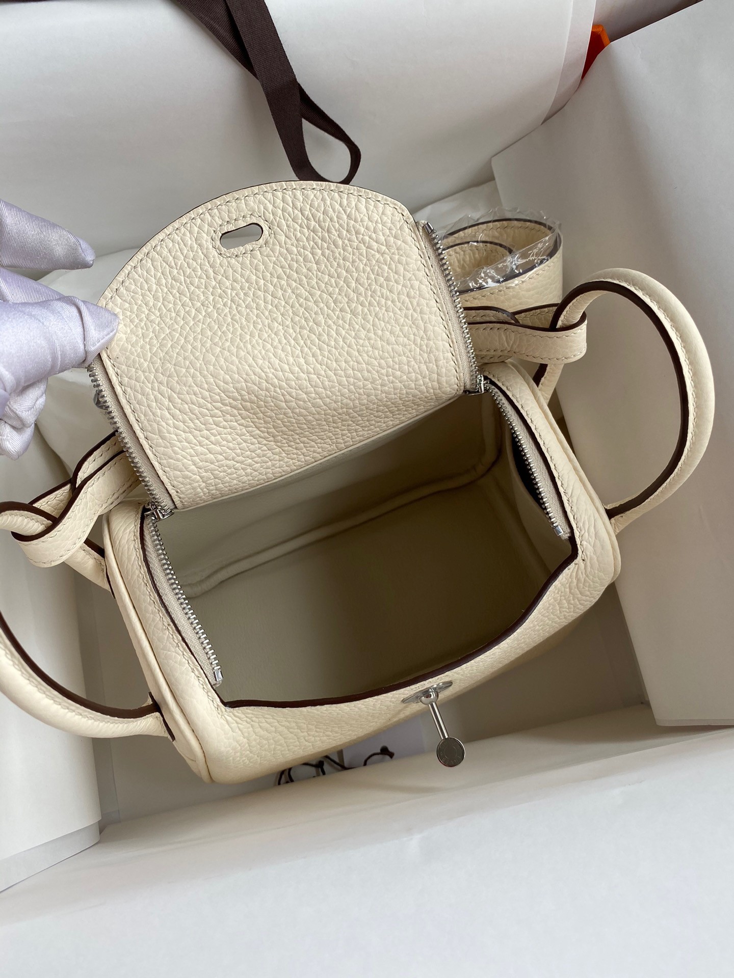 Hermes Mini Lindy Handgefertigte Tasche In Nata Clemence Leder