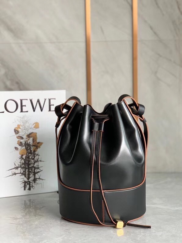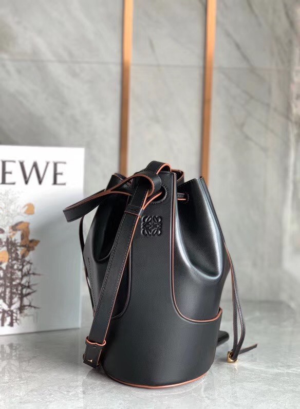 Loewe Medium Balloon Bucket Bag In schwarzem Kalbsleder