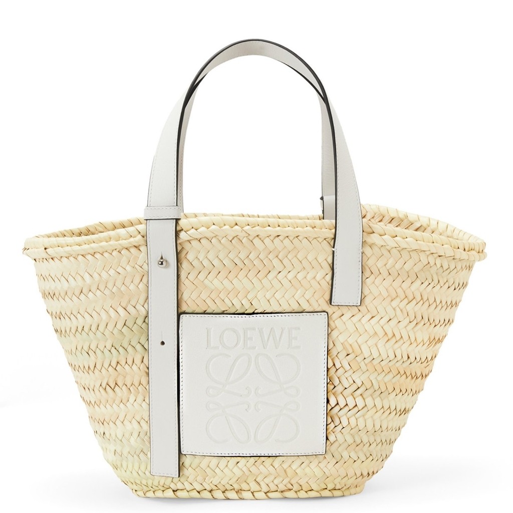 Loewe Medium Basket Bag aus Raffia und weißem Kalbsleder