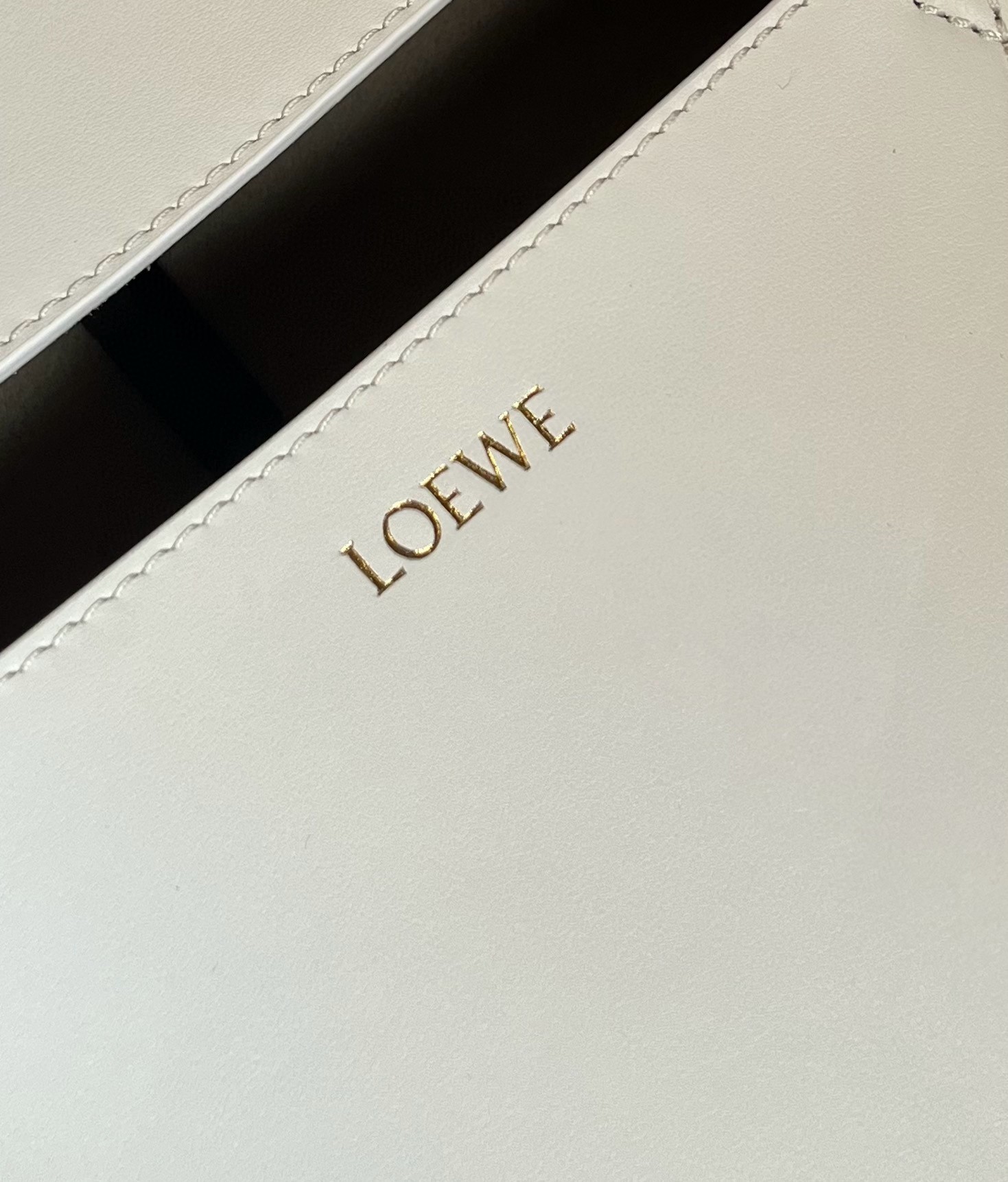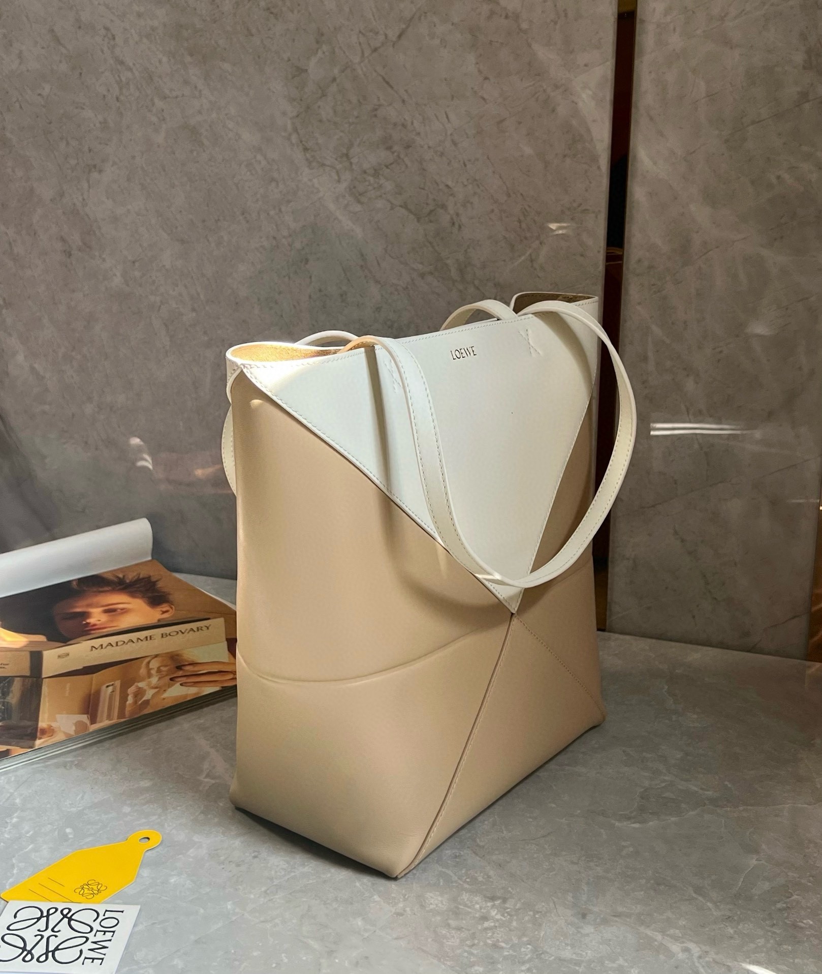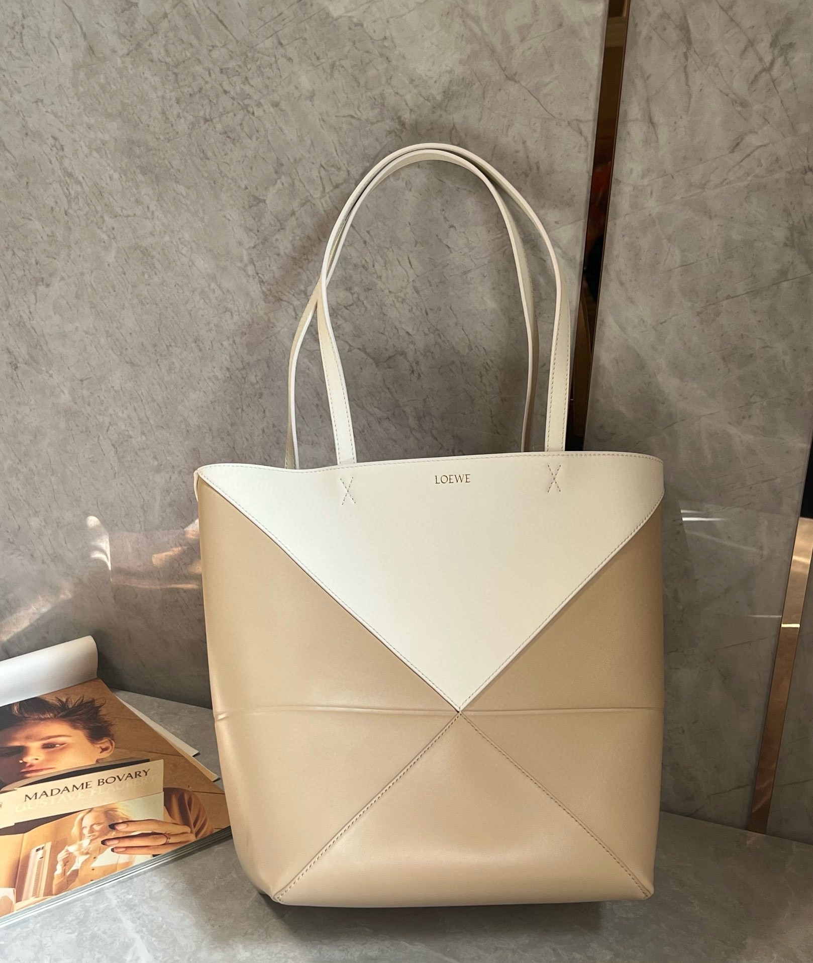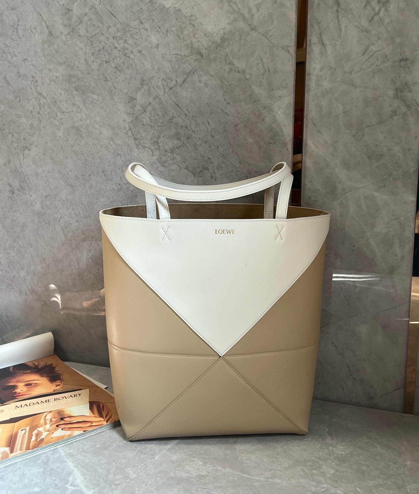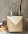 Loewe Medium Puzzle Fold Tote Bag in White/Beige Calfskin