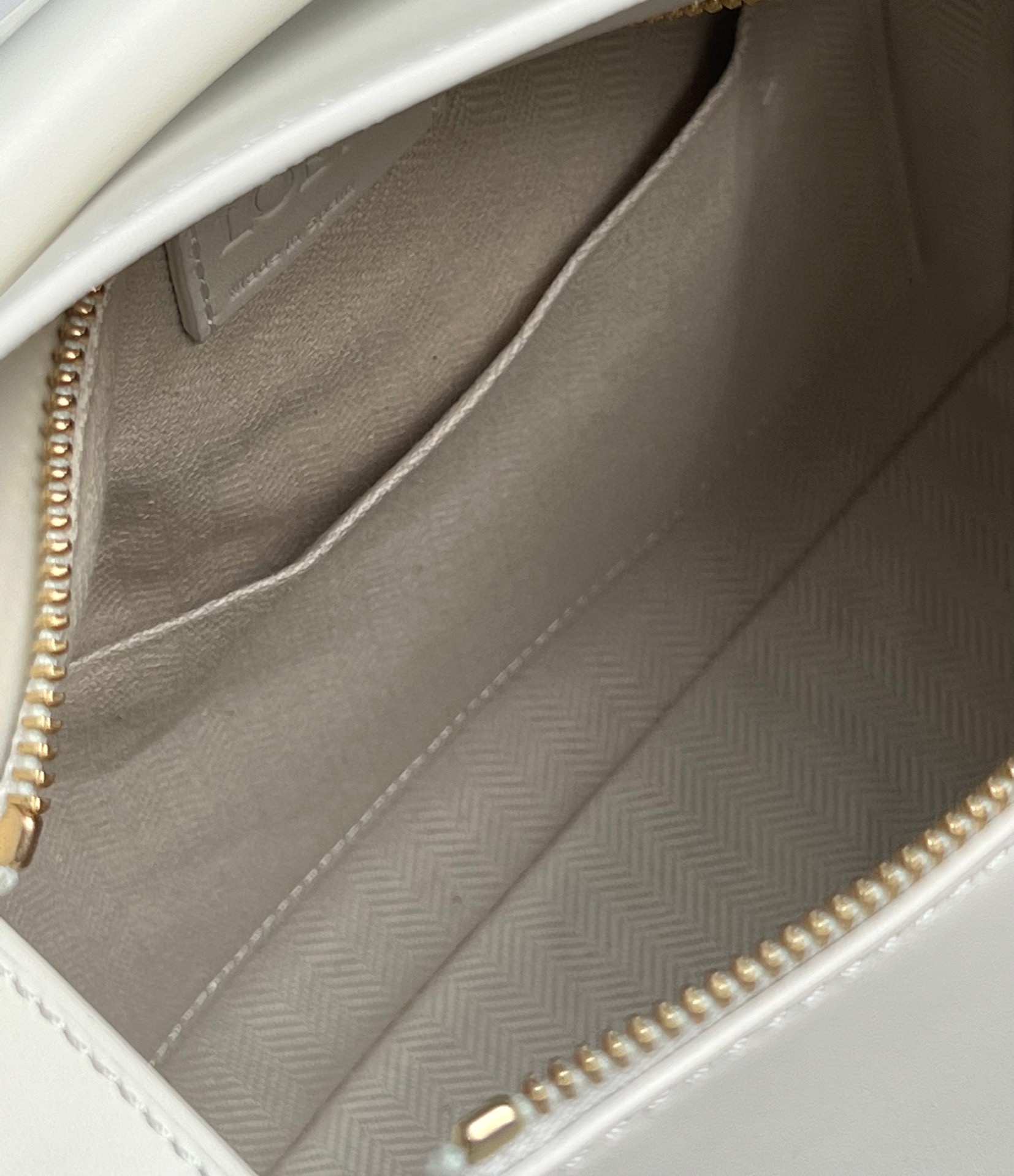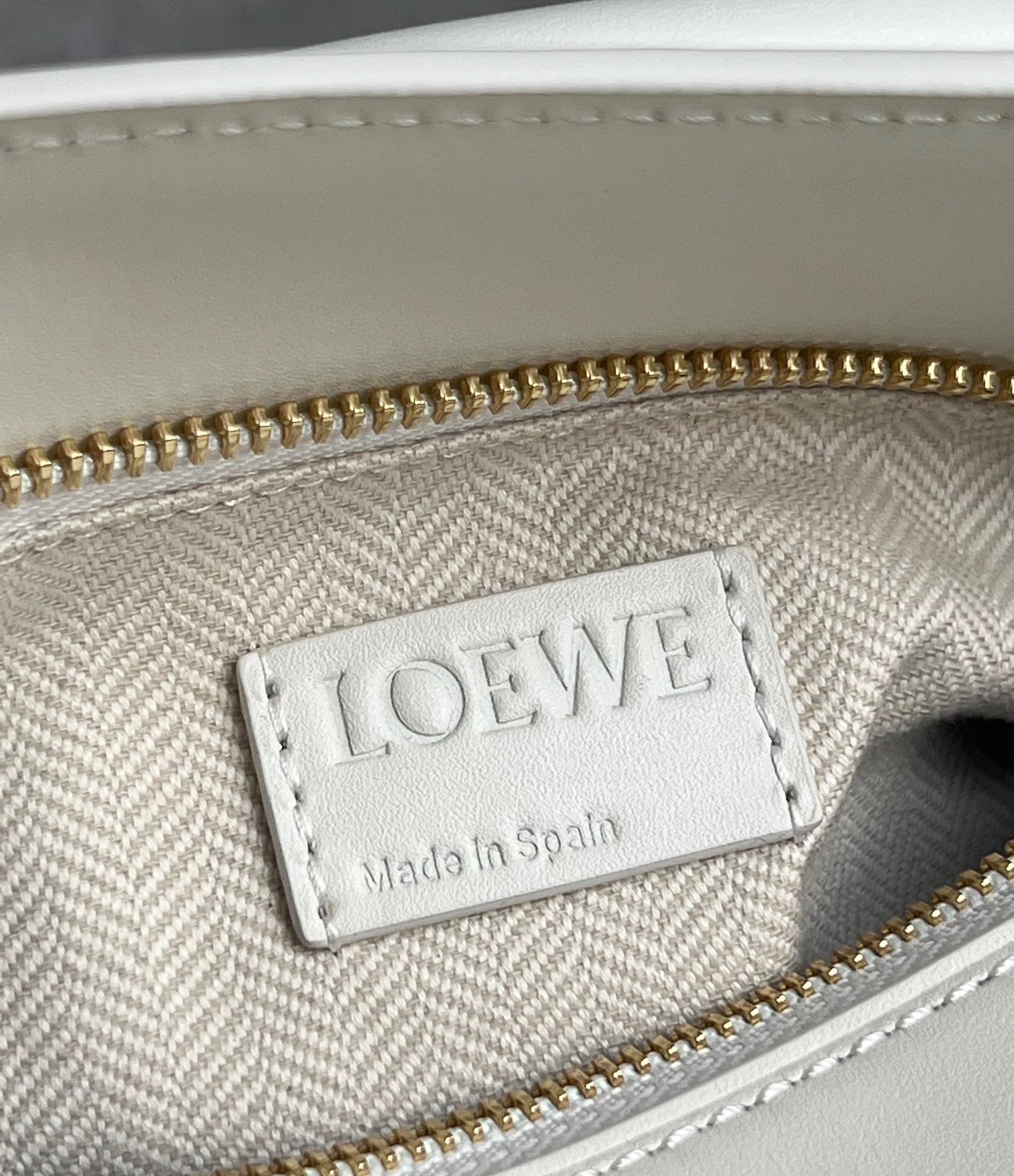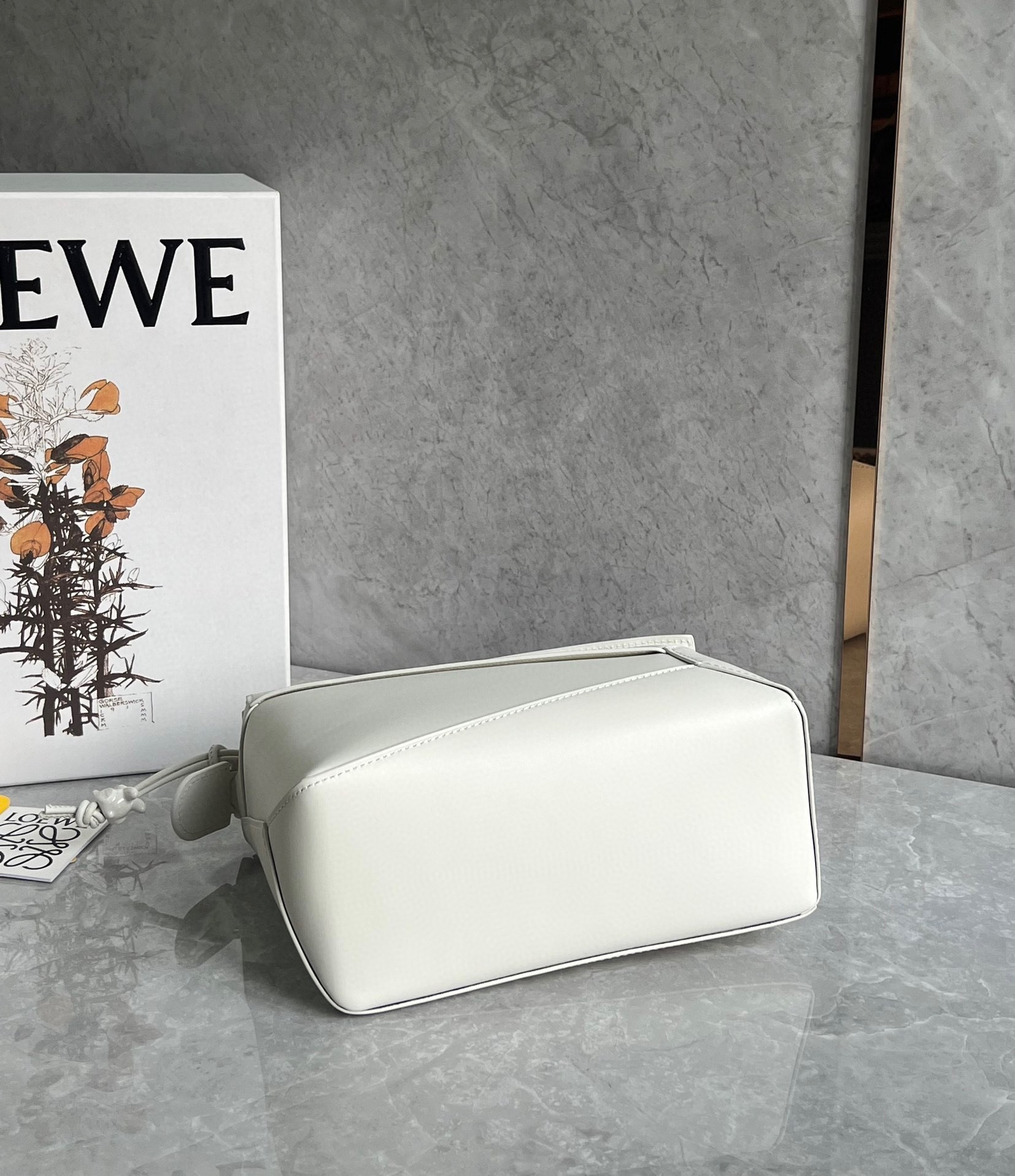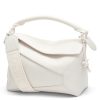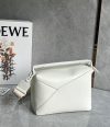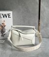 Loewe Puzzle Rand kleine Tasche In weißem Satin Kalbsleder