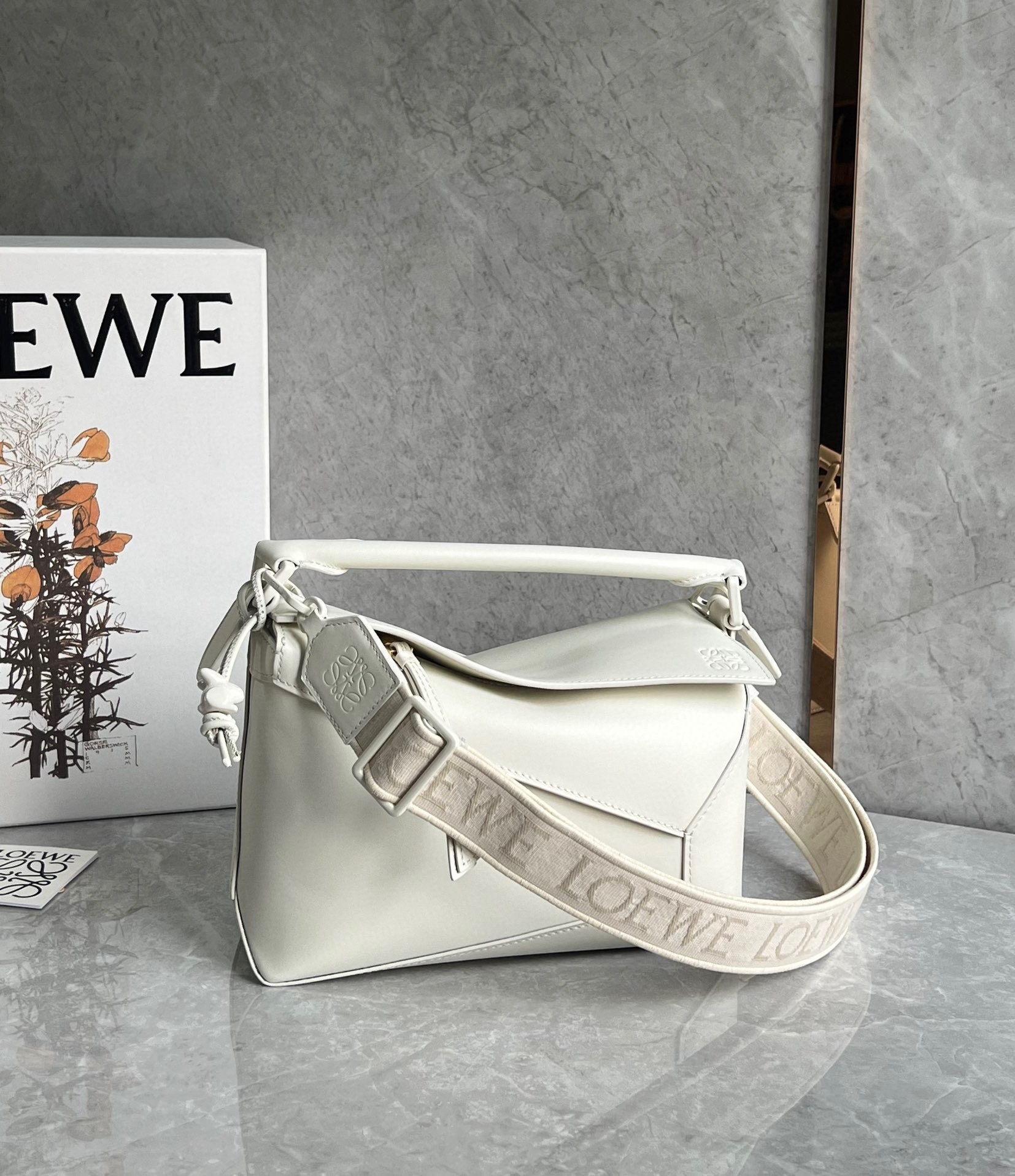 Seien Sie der Erste, der "Loewe Puzzle Edge Small Bag In White Satin Calfskin" bewertet.