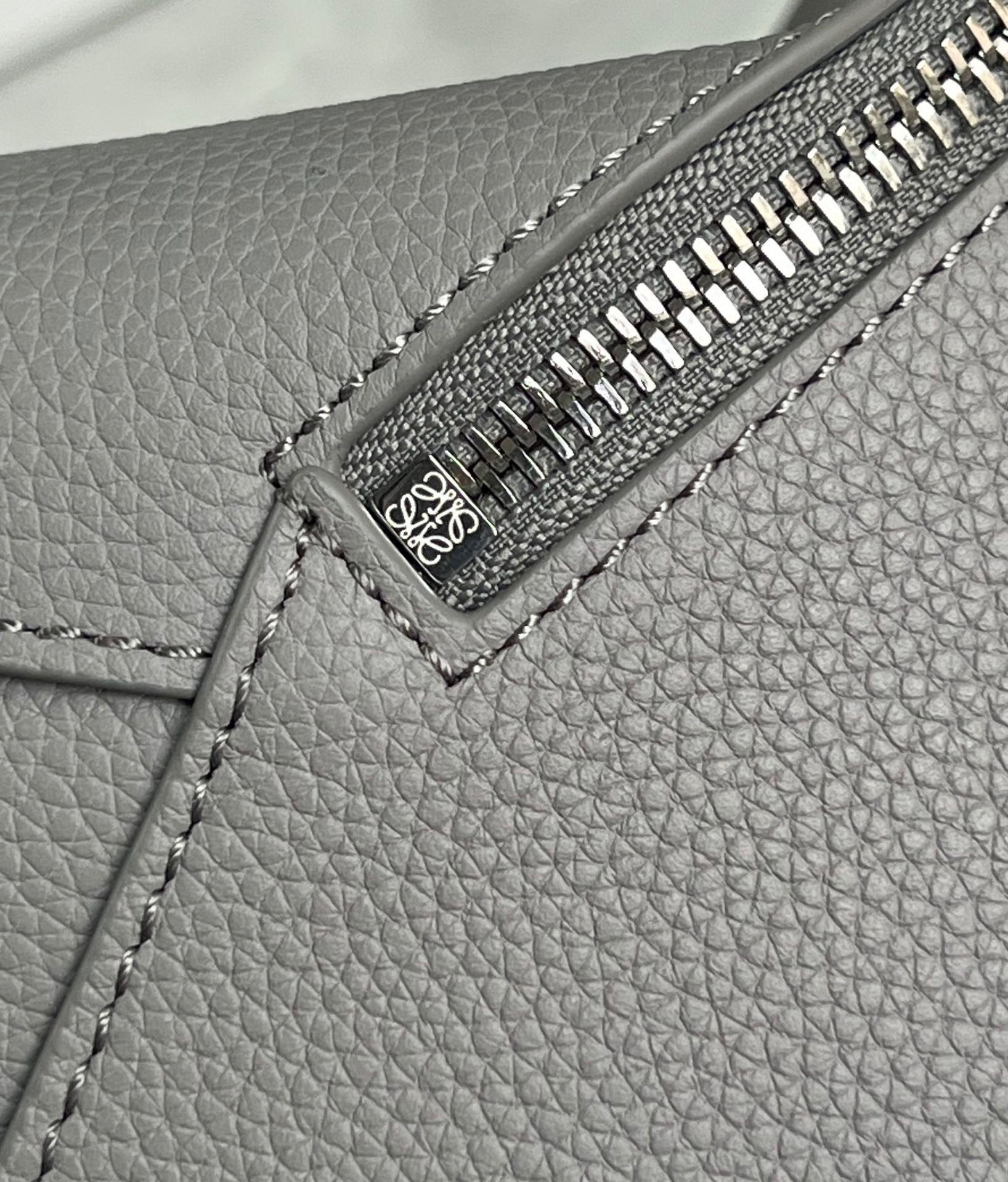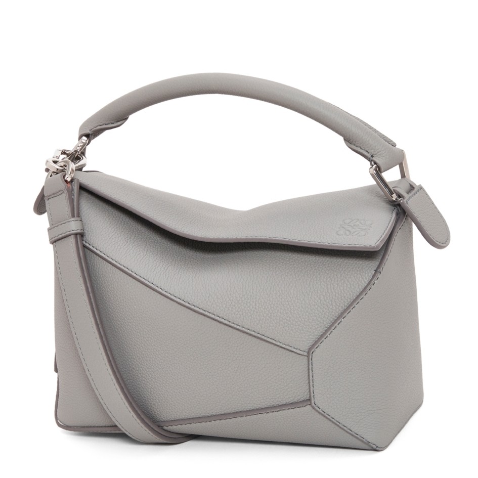 Loewe Puzzle Small Bag In Pearl Grey Grained Leather