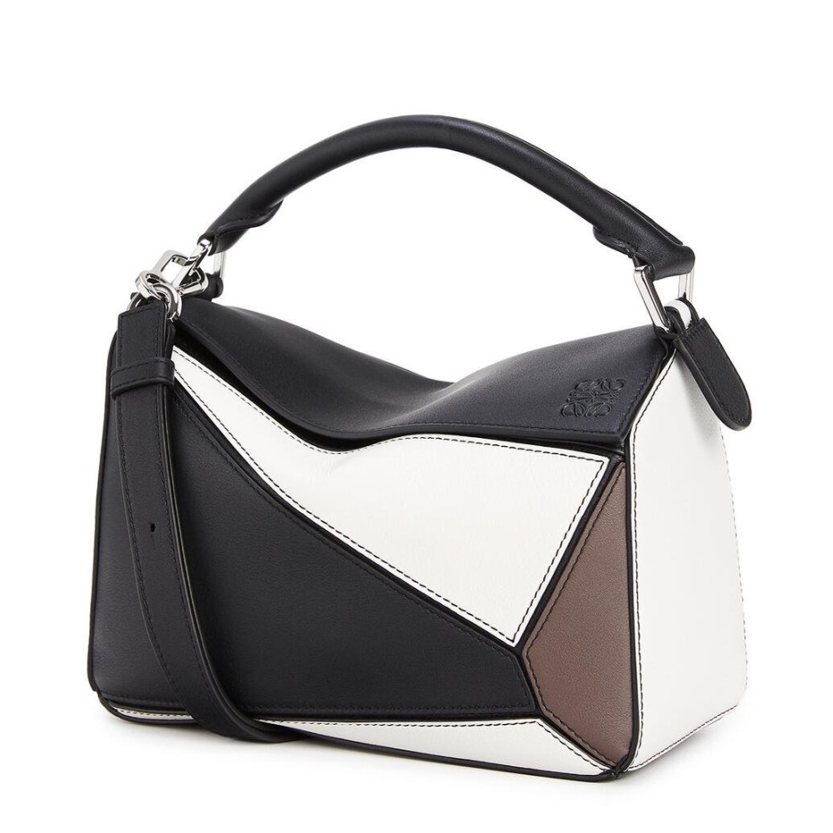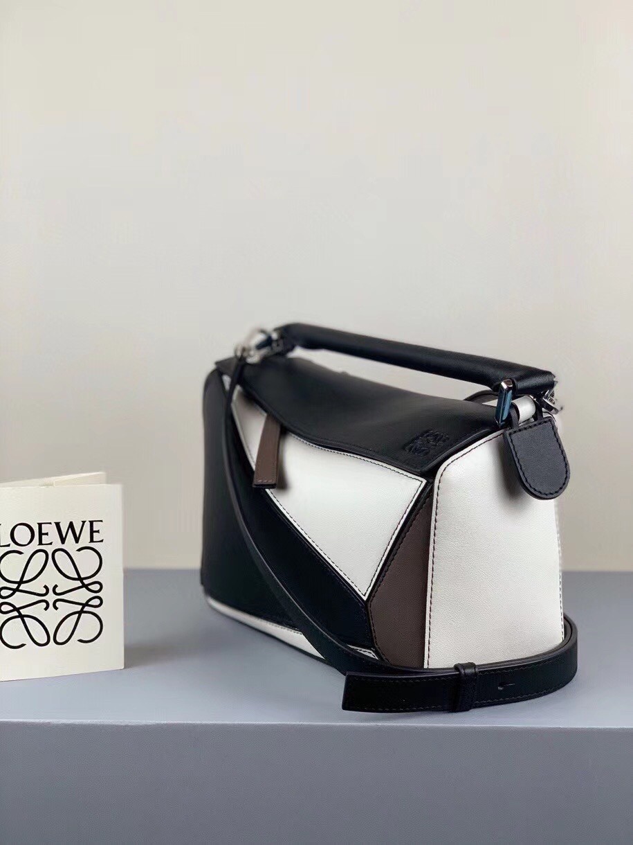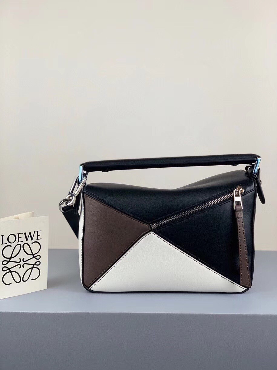 Loewe Small Puzzle Bag In Black/Taupe/White Calfskin
