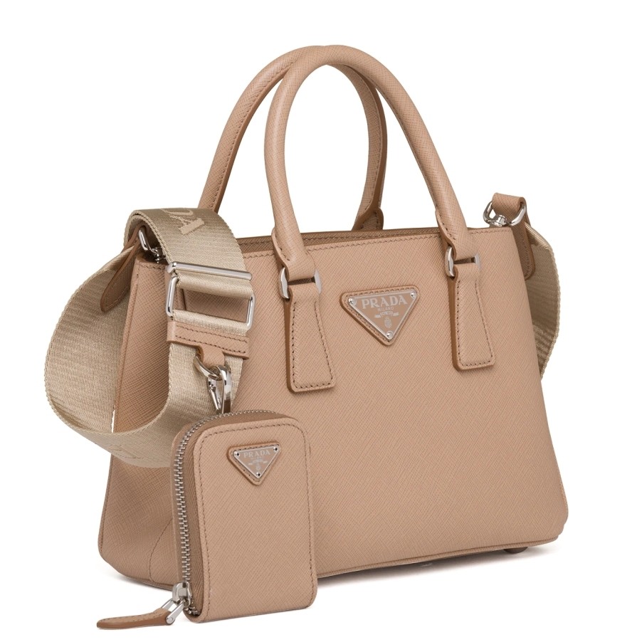 Prada Galleria Micro Tasche In Beige Saffiano Leder