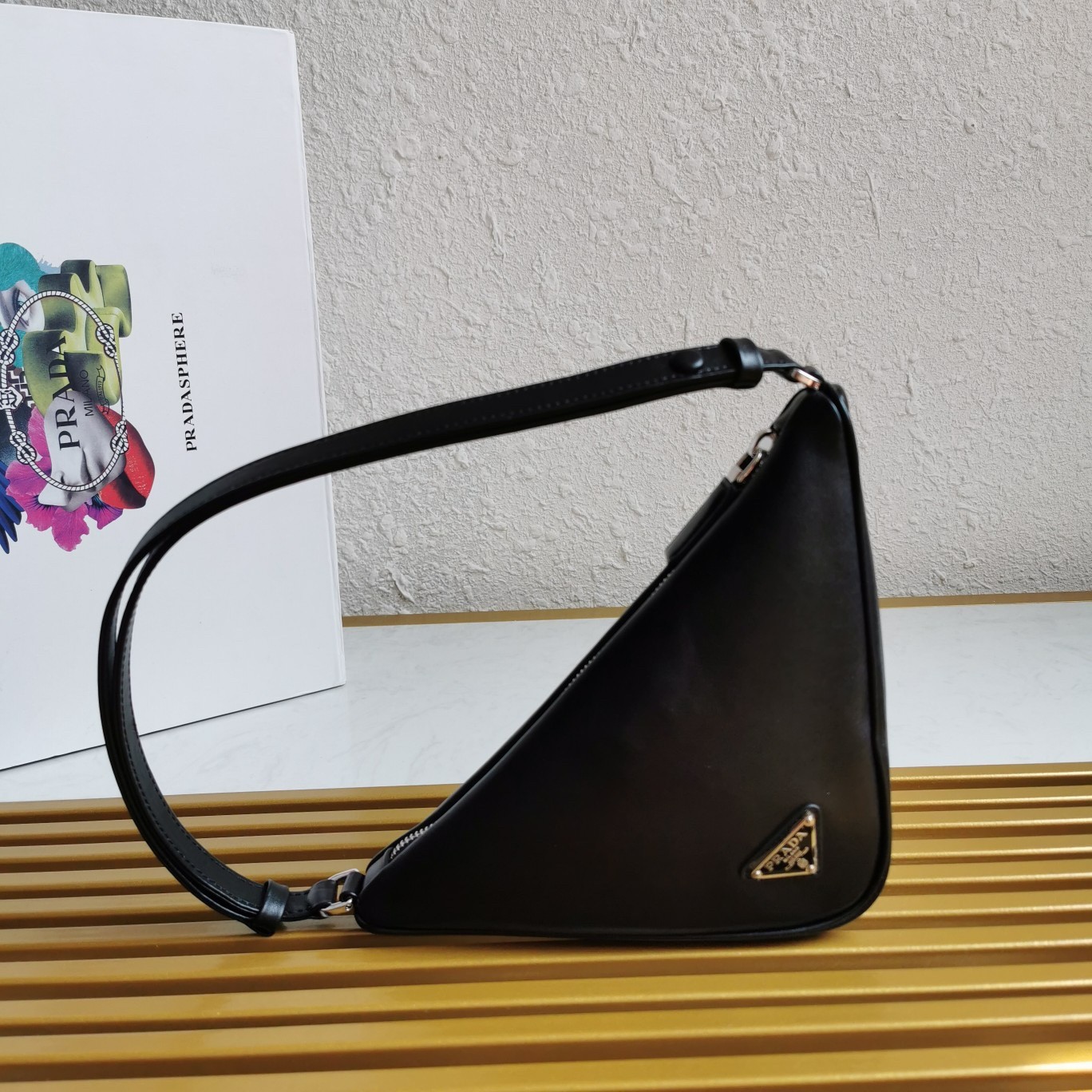 Prada Triangle Pouch Bag In Black Leather