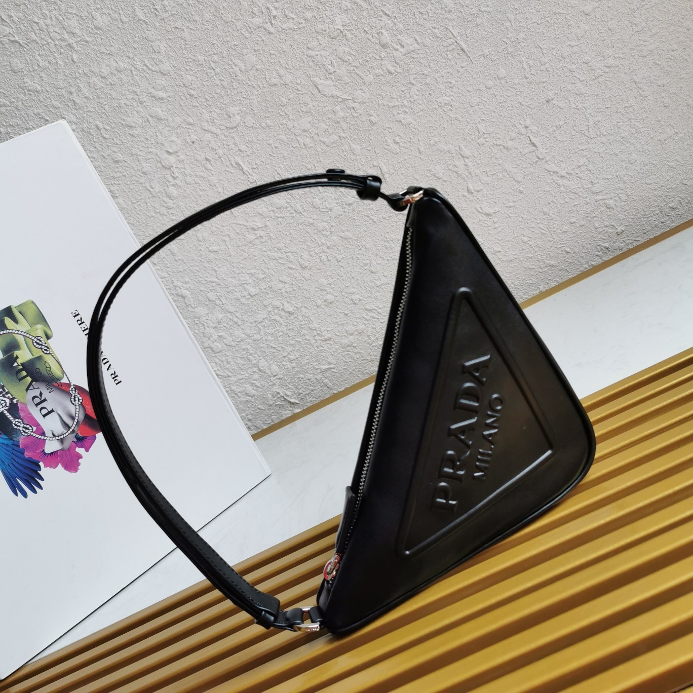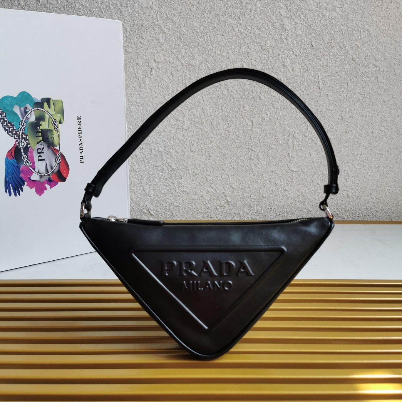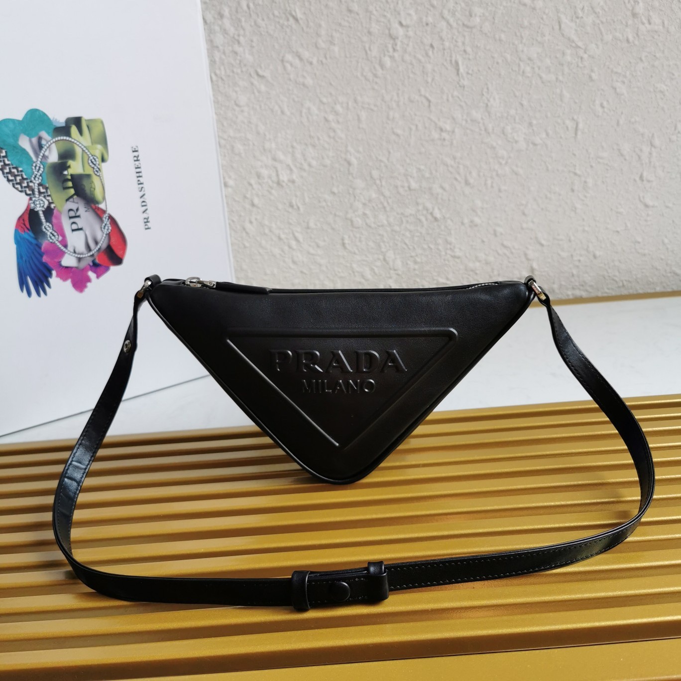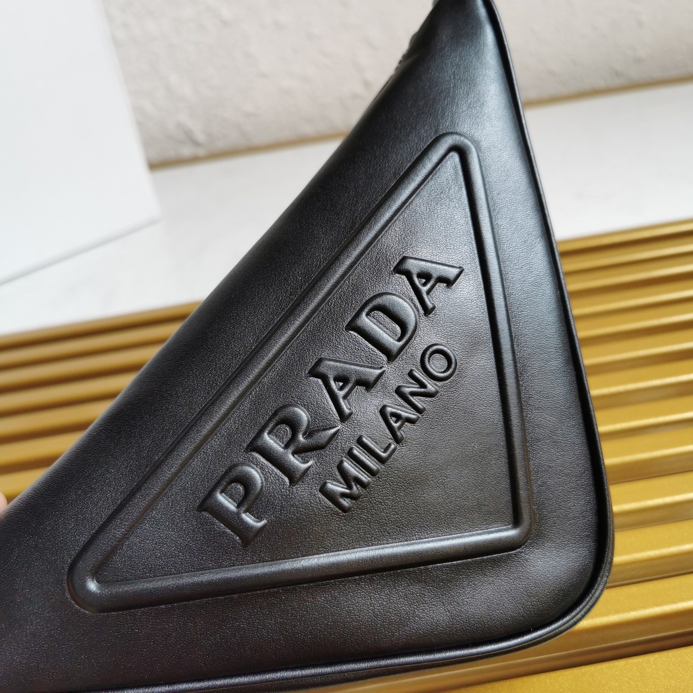 An iconic element of the brand, the Prada triangle expresses uniqueness and modernity through its universal, minimalist shape, reinvented in a different way each season. Its geometric lines inspire the silhouette of this leather pouch enhanced on the front by the embossed logo that emphasizes its contemporary character.